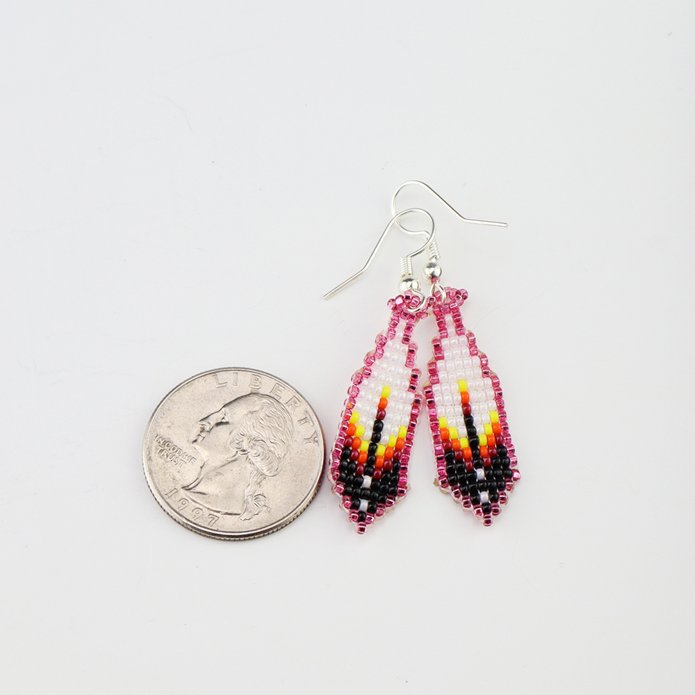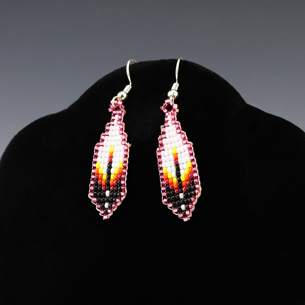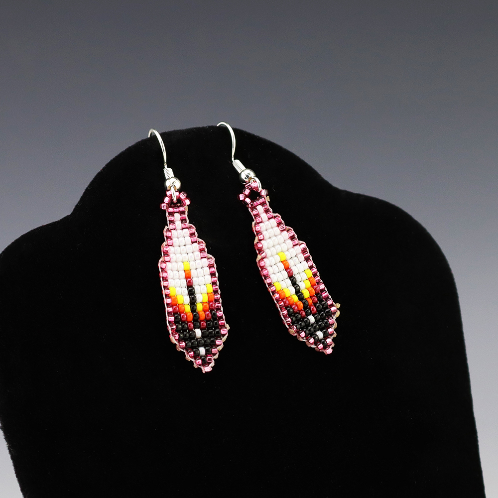 Gorgeous beaded feather earrings by Deandra Goldtooth. Great combination of colors.