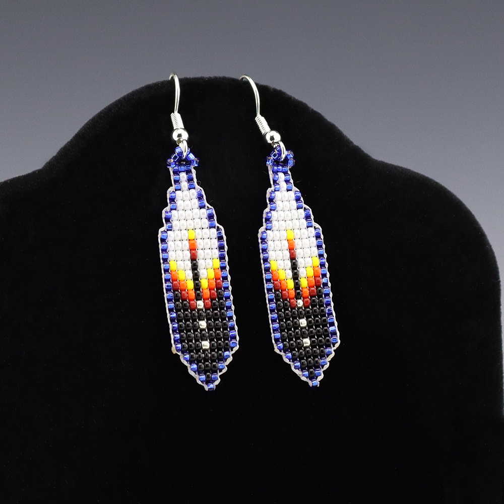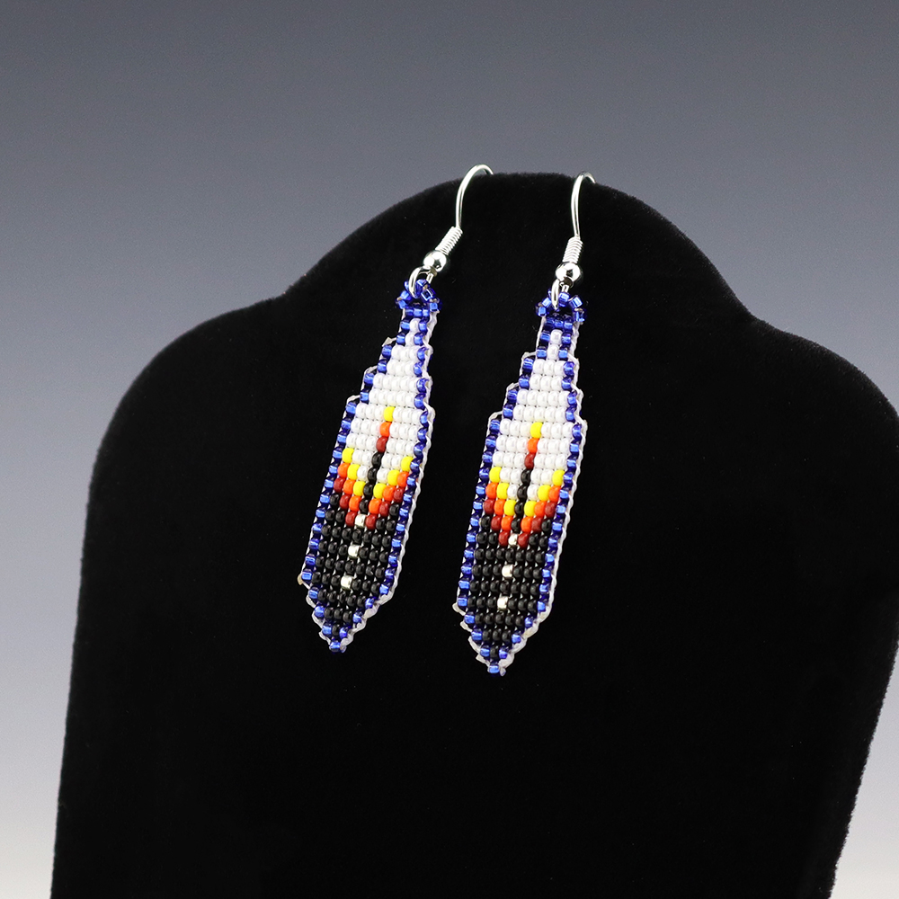 Gorgeous beaded feather earrings by Deandra Goldtooth. Great combination of colors.