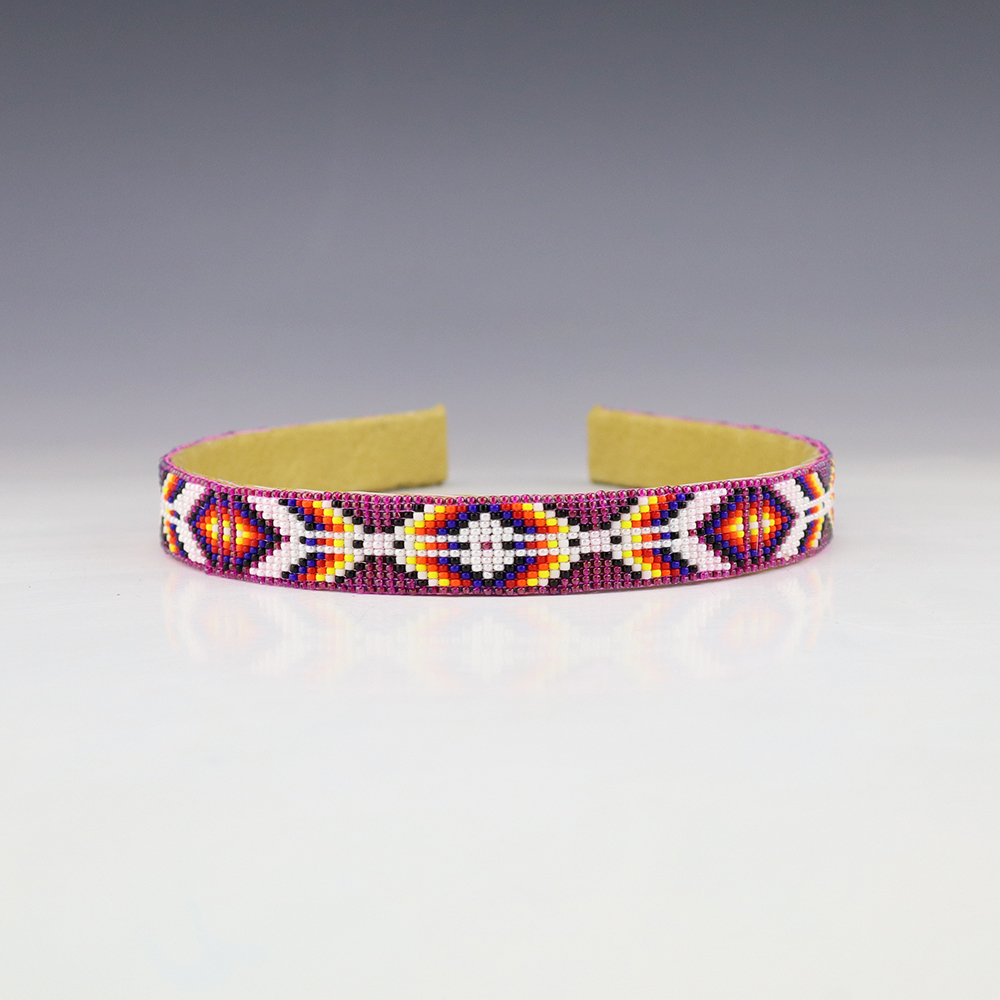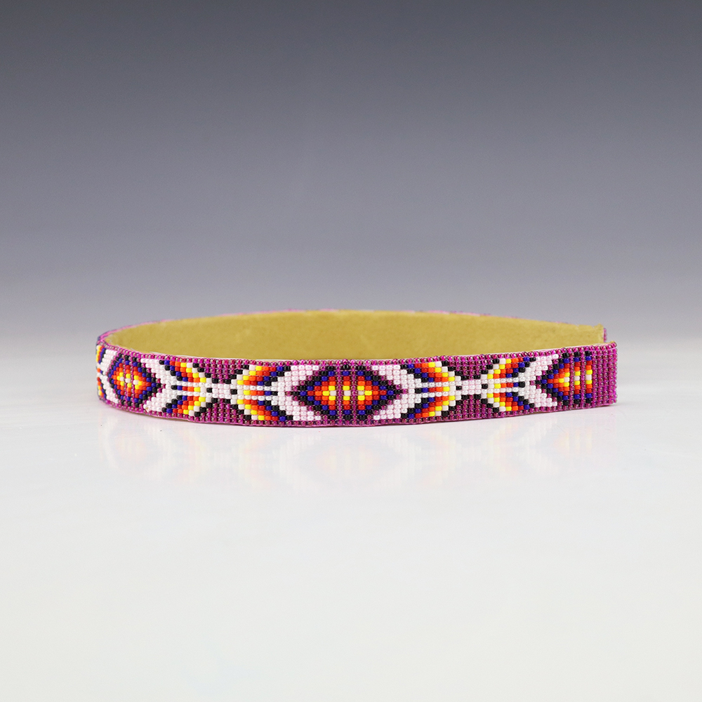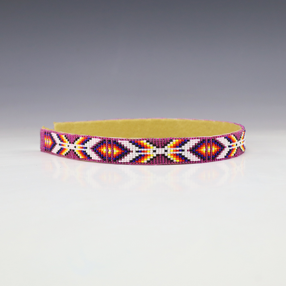 Great colors and patterns in this hand beaded head band. Hand made by Navajo artist Habana Thomas.