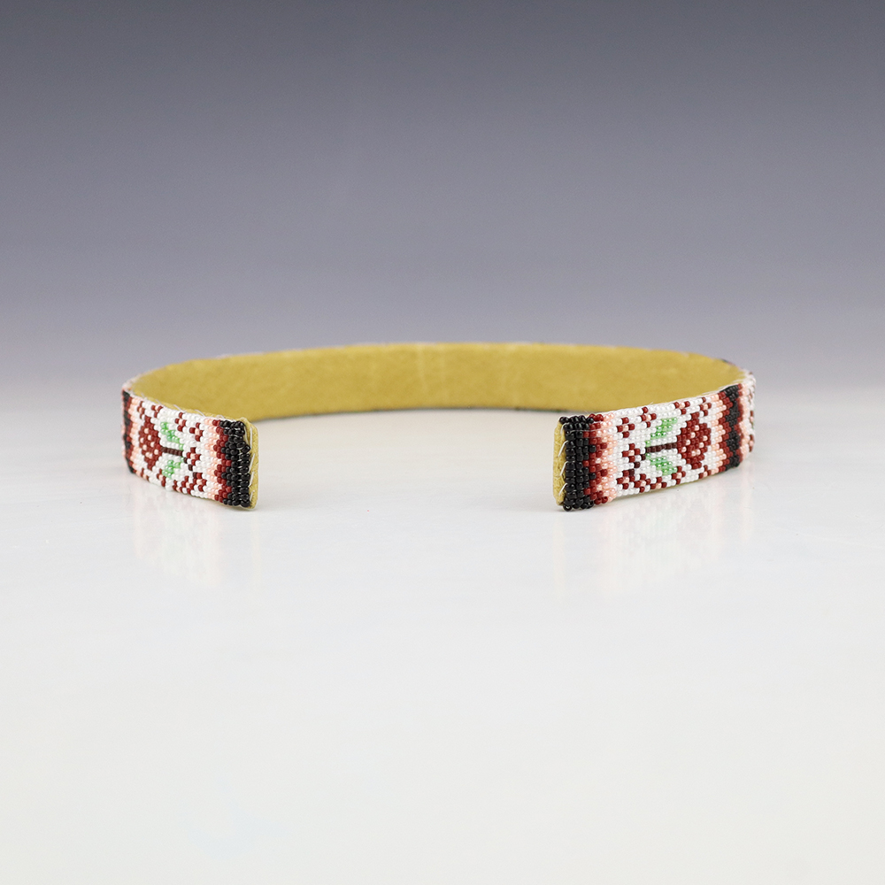 Navajo artist, Charlene Jackson made this lovely beaded bracelet. Great colors and patterns. The bracelet is backed with a soft leather and brass is on the inside, so you can adjust the size. The entire inner circumference is about 7 1/4”, including 1” opening. 1 1/4” wide When trade beads...