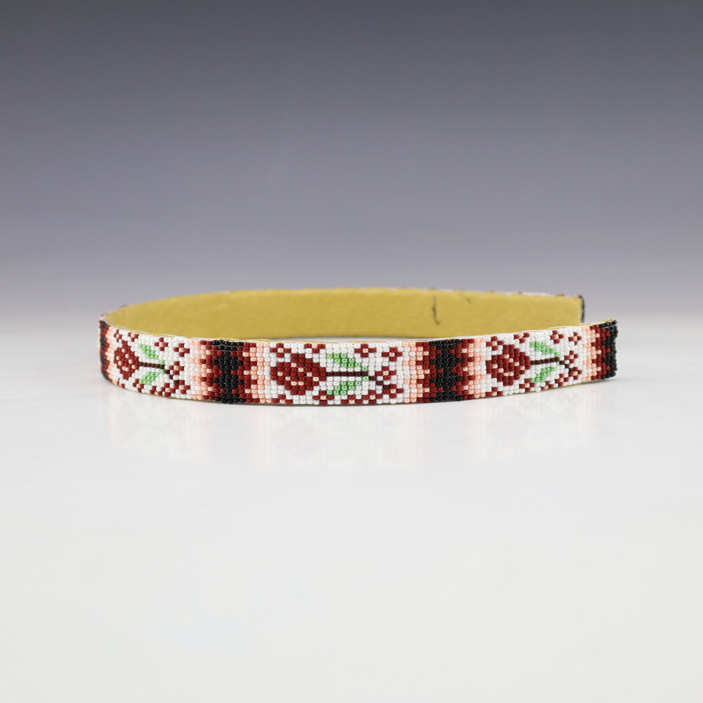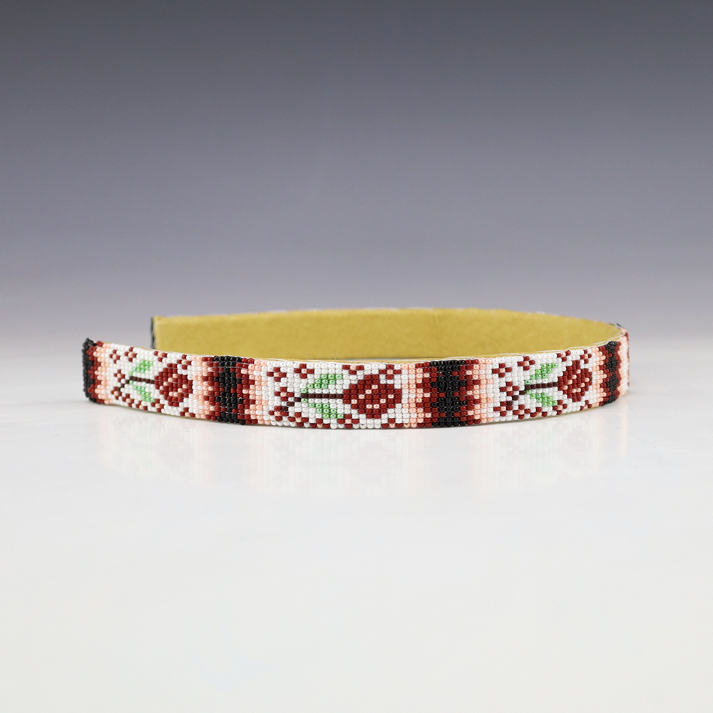 Great colors and patterns in this hand beaded head band. Hand made by Navajo artist Habana Thomas.