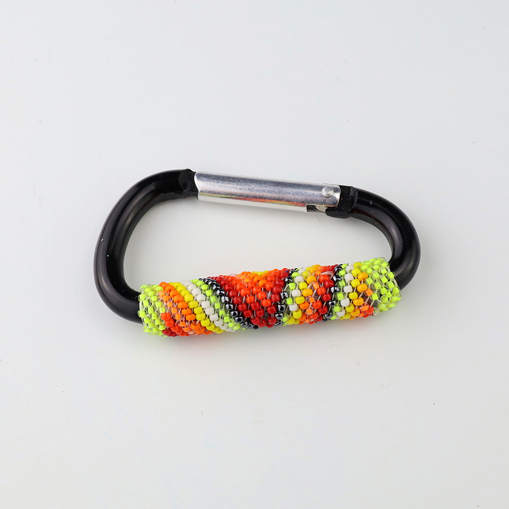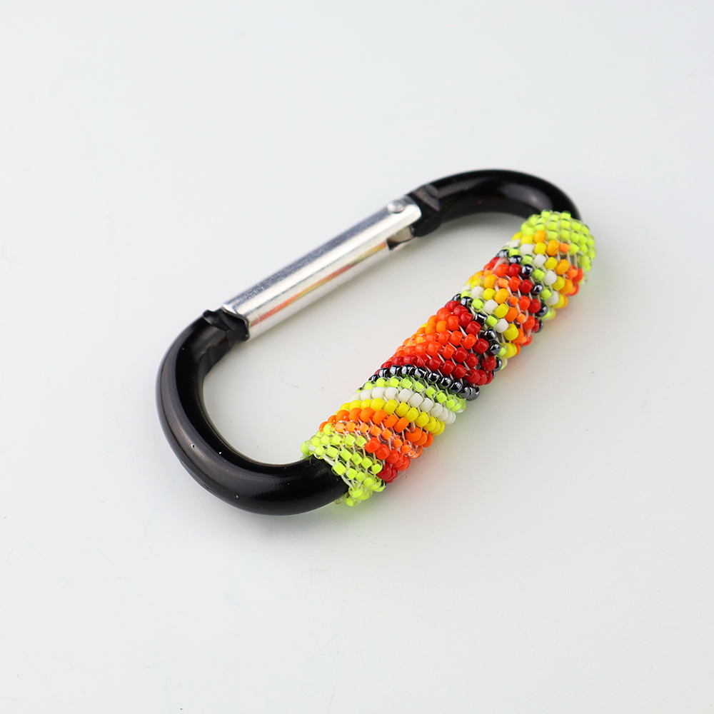 Navajo artist Charlene Jackson, hand beaded this fabulous carabiner key ring. Great colors and pattterns. Carry your keys around in style! 3 1/4″ x 1 7 /8″ x 5/8″ Artist card included When trade beads were introduced to Native Americans, they made these colorful glass beads part of their jewelry....