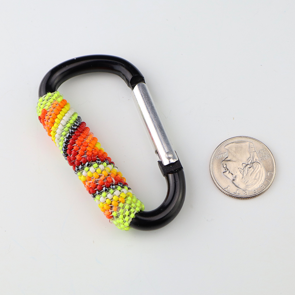 Great hand beaded carabiner key chain by Charlene Jackson. Carry your keys around in style! 3 1/8″ x 1 7/8″ x 1/2″ Artist card included When trade beads were introduced to Native Americans, they made these colorful glass beads part of their jewelry. Over the years, glass beads...