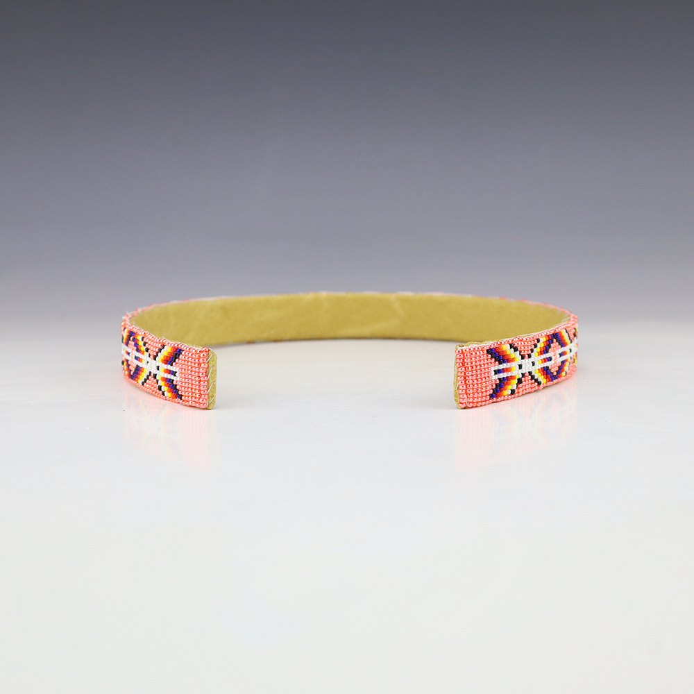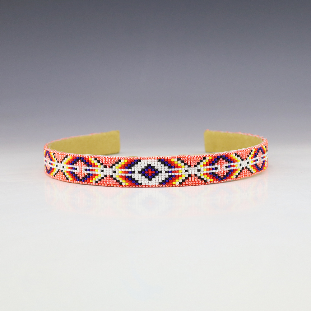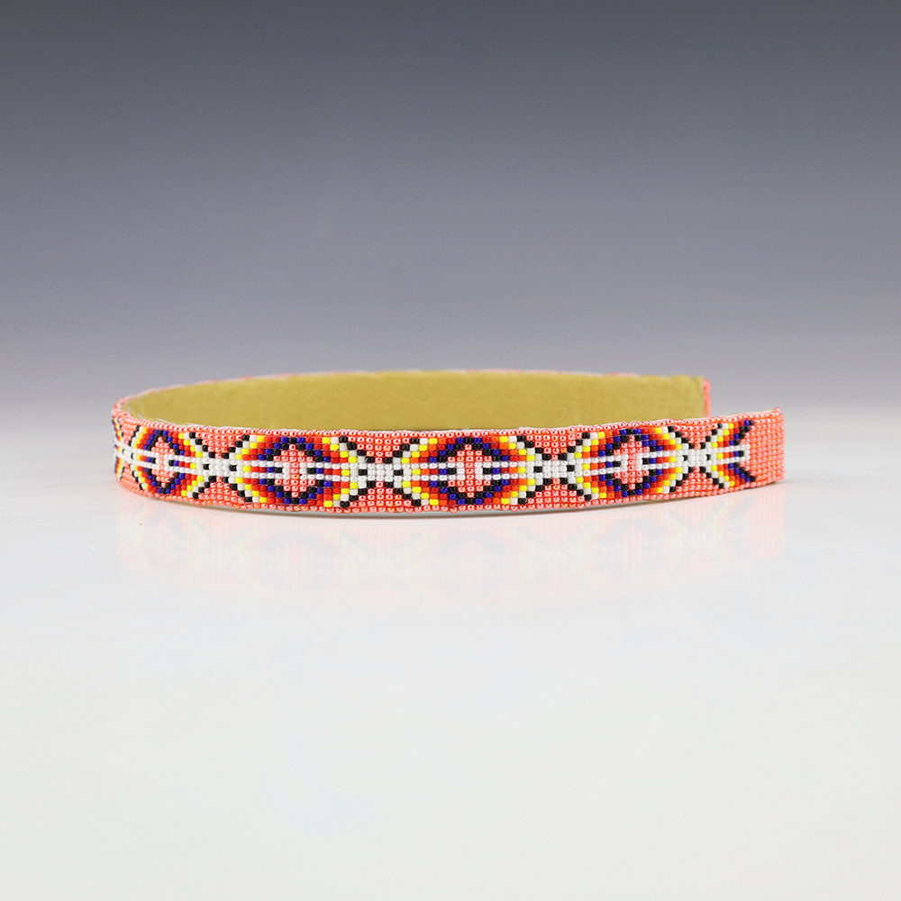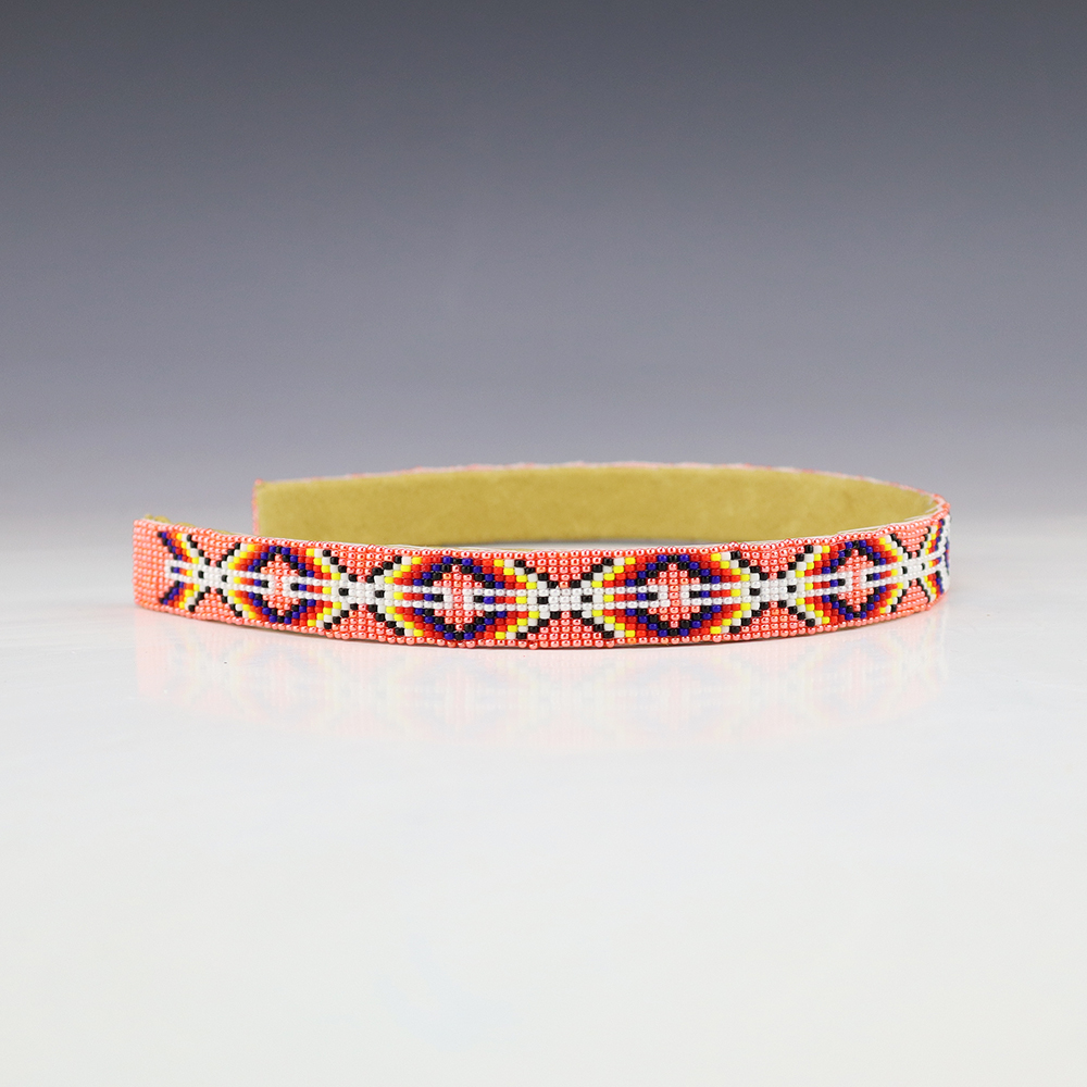 Great colors and patterns in this hand beaded head band. Hand made by Navajo artist Habana Thomas.