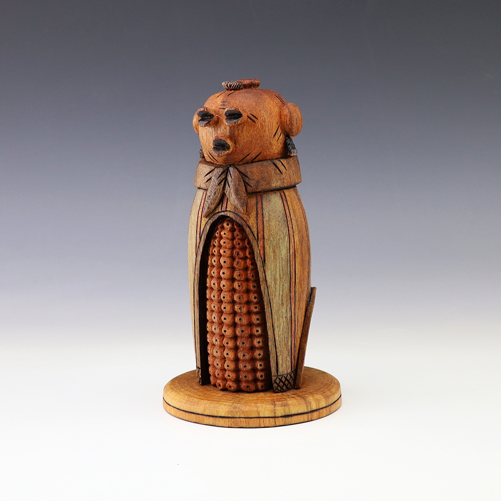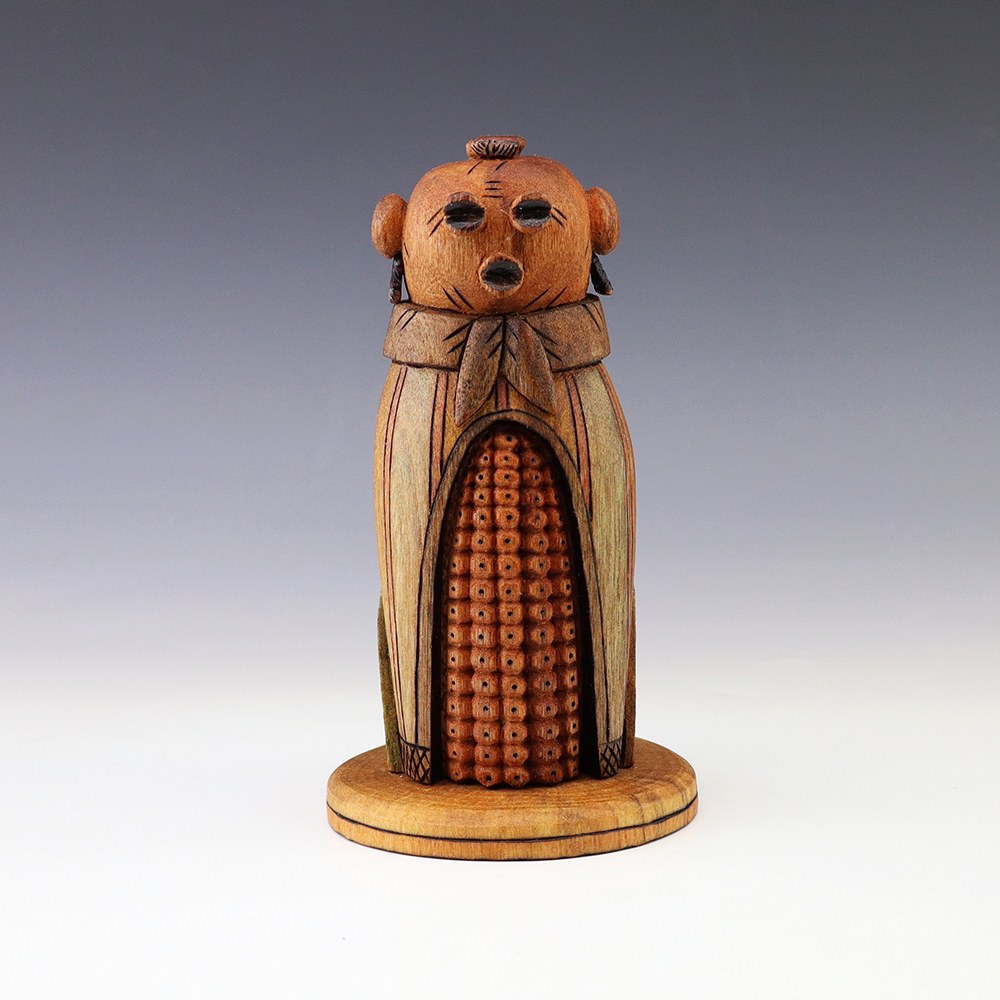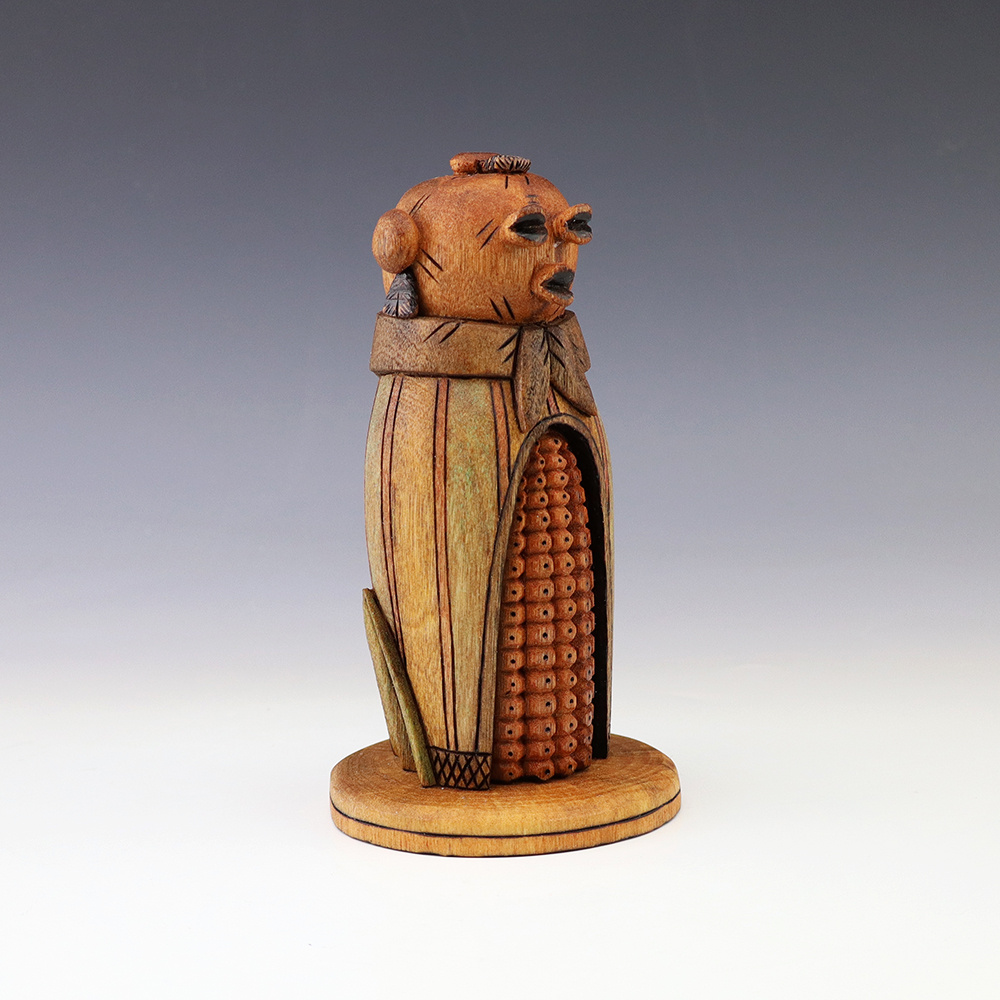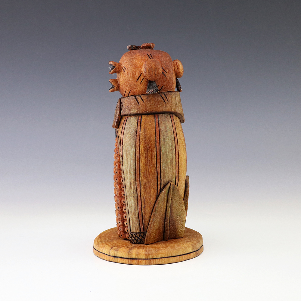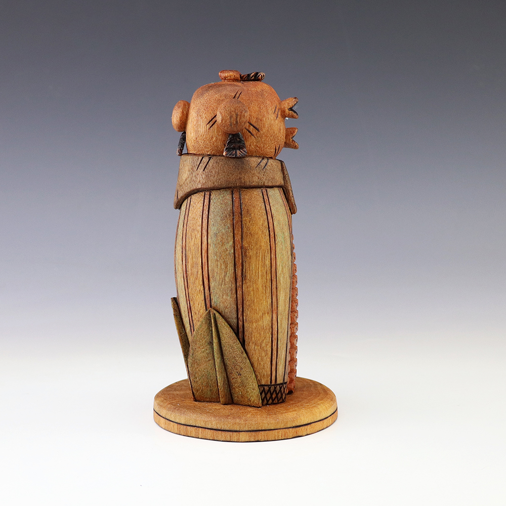 Hopi Kachina carver, Tyson Nequatewa has been creating kachinas for over 50 years. Over the years, he has won many awards for his work. Tyson expertly carves each kachina out of the root of a cottonwood tree with an amazing amount of detail and precision. Each kachina that Tyson carves, has a highly detailed corn body.