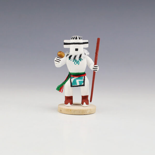 This Koshare Kachina is wonderfully carved out of wood. Hand made by Navajo artist Alfred Benally. A great addition to your Native American art or kachina collection. Signed 8 1/4″ tall x 4 1/4″ long x 4” wide Artist card included The Koshare or the Pueblo clowns are jesters or...