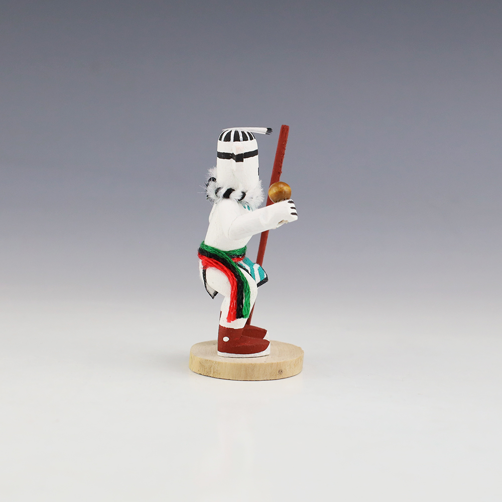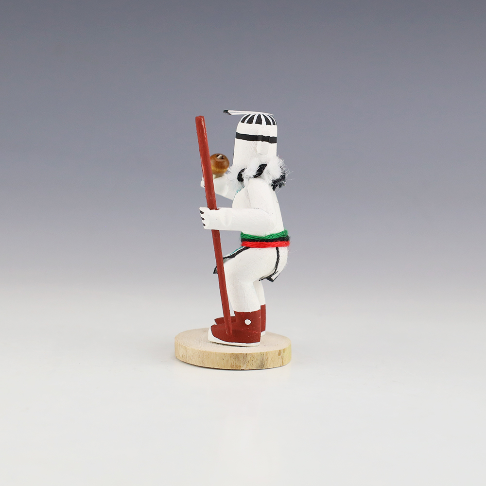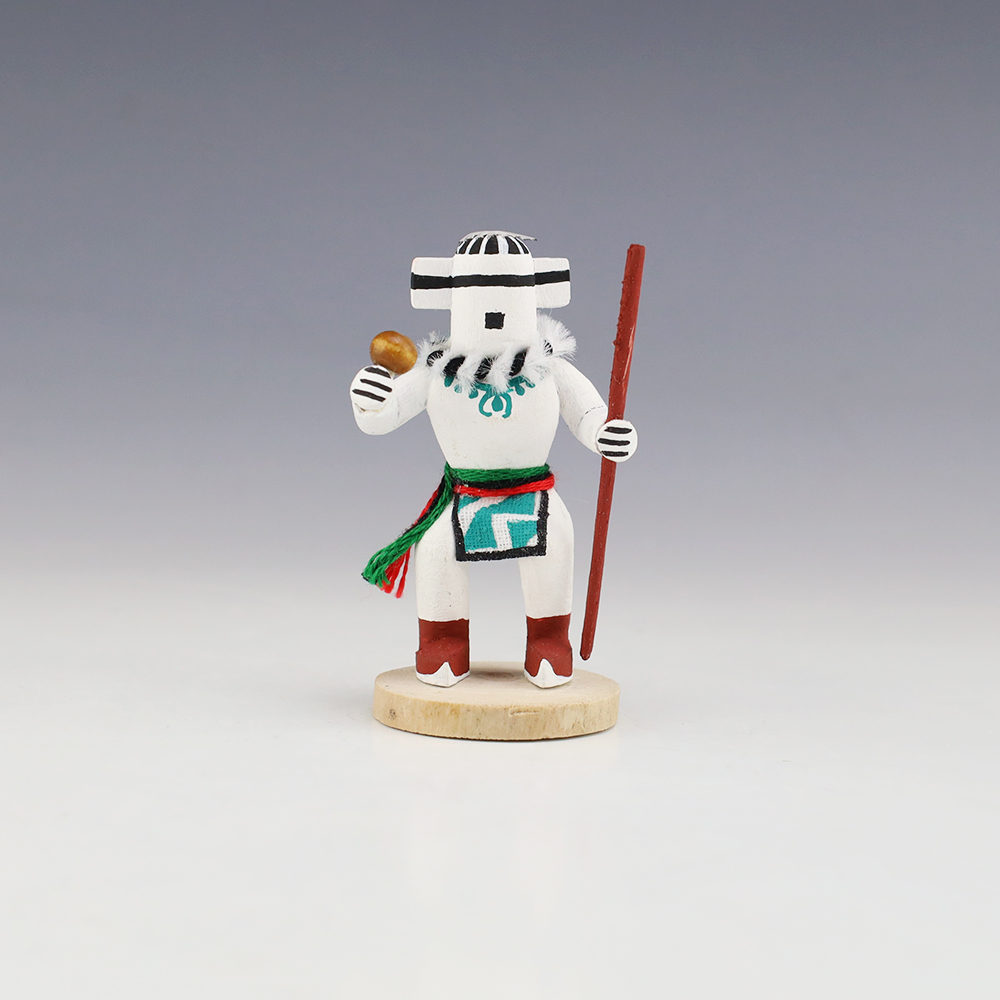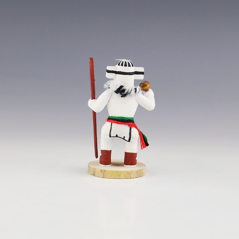 Hopi/Acoma artist Adrian Leon creates wonderful miniature kachinas, and this Hututu Kachina is no exception. Delicately carved and painted, this marvelous carving would be a great addition to your kachina or Native American art collection. Signed