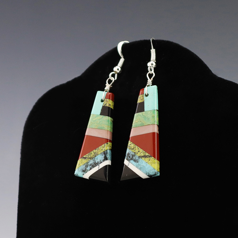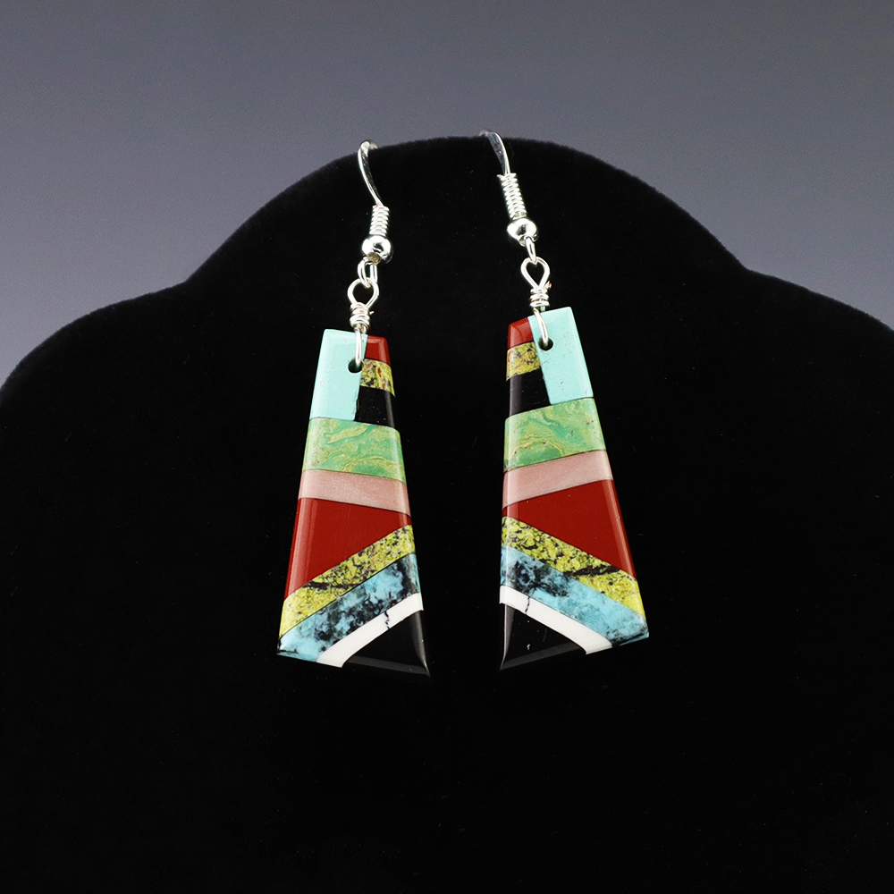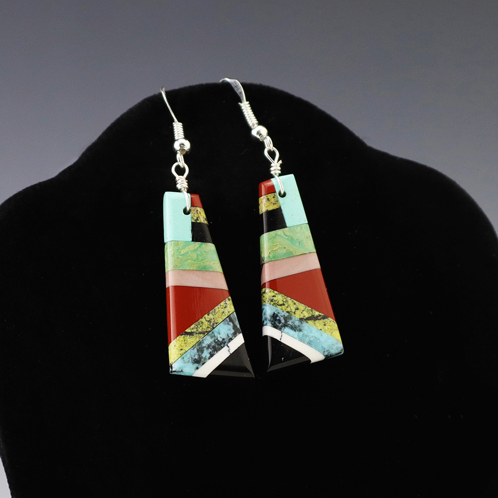 Zuni jewelry makers, Nancy and Sheldon Westika created these stunning earrings. Made out of sterling silver and inlaid with Henna Limestone and Turquoise. Zuni artists are known for their lapidary work. The Westikas have been making jewelry since the 1970’s and they are known for their fine inlay work. Weighs...