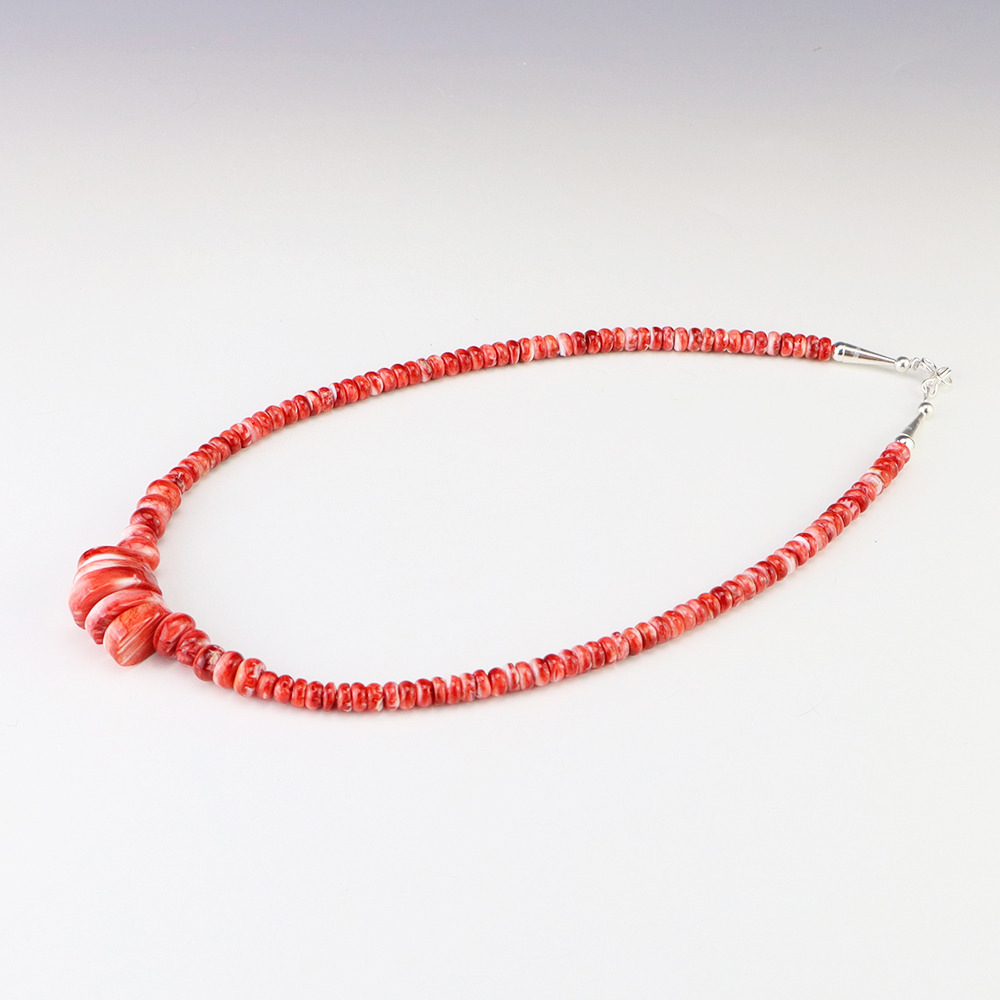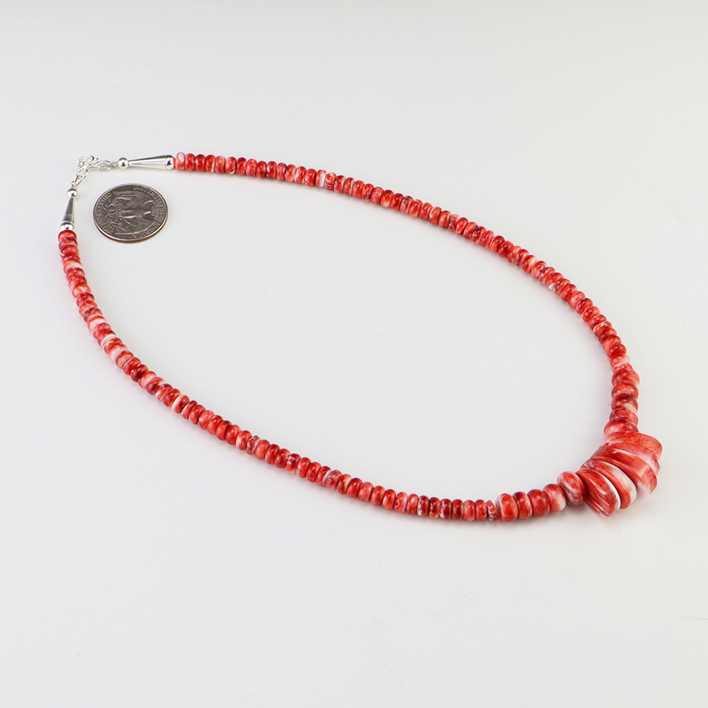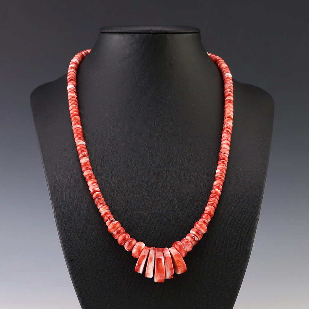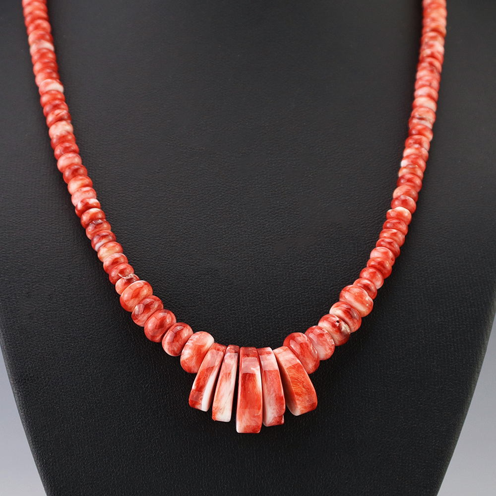 Kewa (Santo Domingo) artists are known for their heishi. The word “heishi“ means “shell” in the Keresan language. Traditionally Santo Domingo jewelry makers created their heishi jewelry out of shell. The shell is hand cut into a flat disc. Today, other stones that Santo Domingo artists cut in this manner, are also referred to as heishi. With modern tools and innovations, artists can create different styles of beads and use different gemstones like turquoise, coral, jet, serpentine, and spiny oyster.