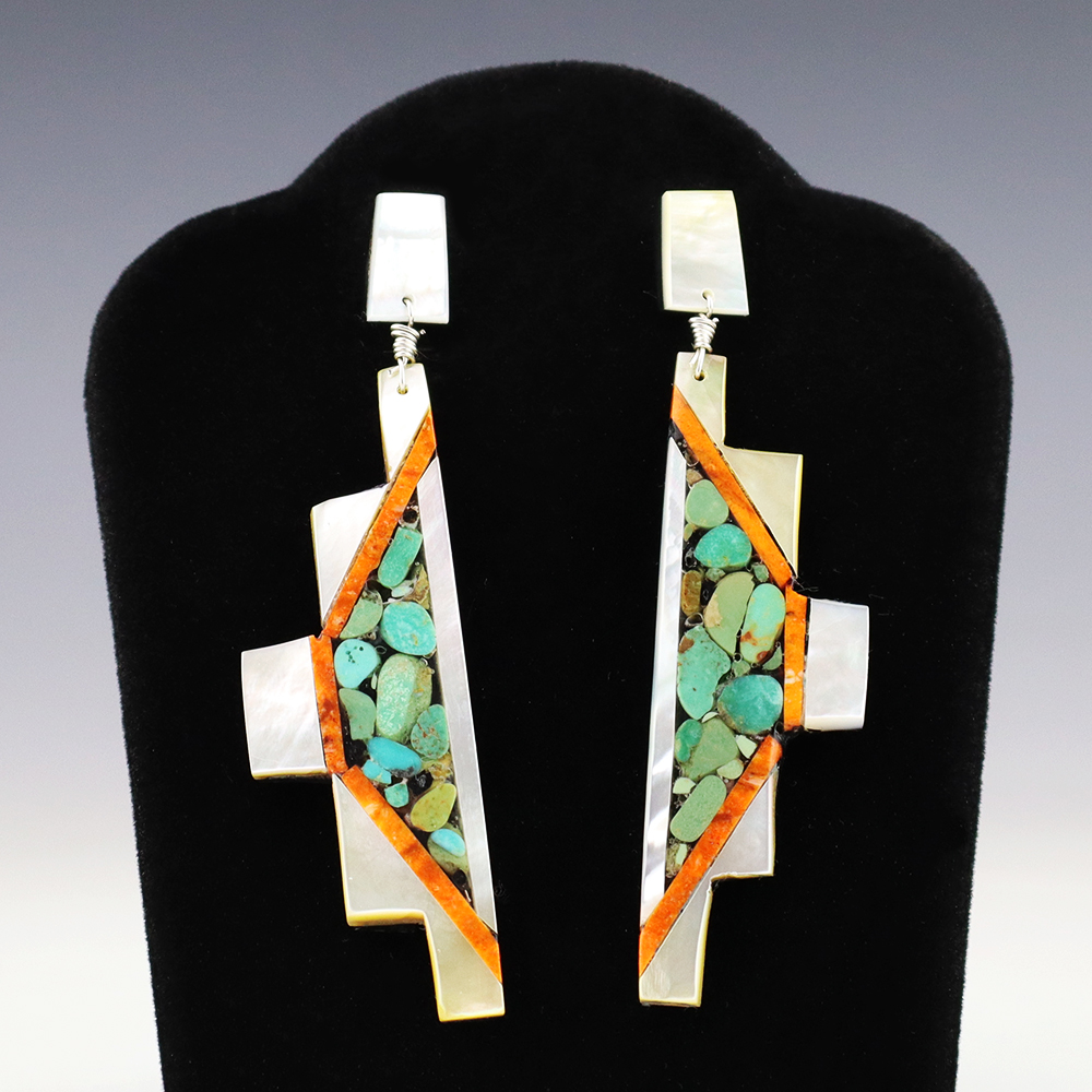 NATIVE AMERICAN ZUNI TURQUOISE EARRINGS BY NANCY & SHELDON WESTIKA