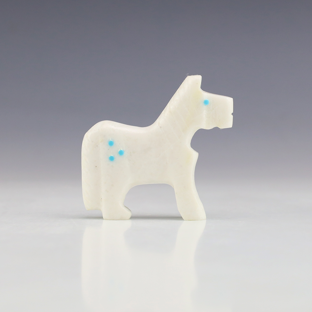 Zuni fetishes are carvings made from various materials by the Zuni people. Traditionally, fetishes served a ceremonial purpose for their creators and they represented animals and figures that were part of their culture. Today, as a form of Native American Art, they are sold to collectors worldwide. With a myriad of materials like turquoise, shell, jet, marble, serpentine, and much more, Zuni fetish carvers are able to create carvings in a style of their own.