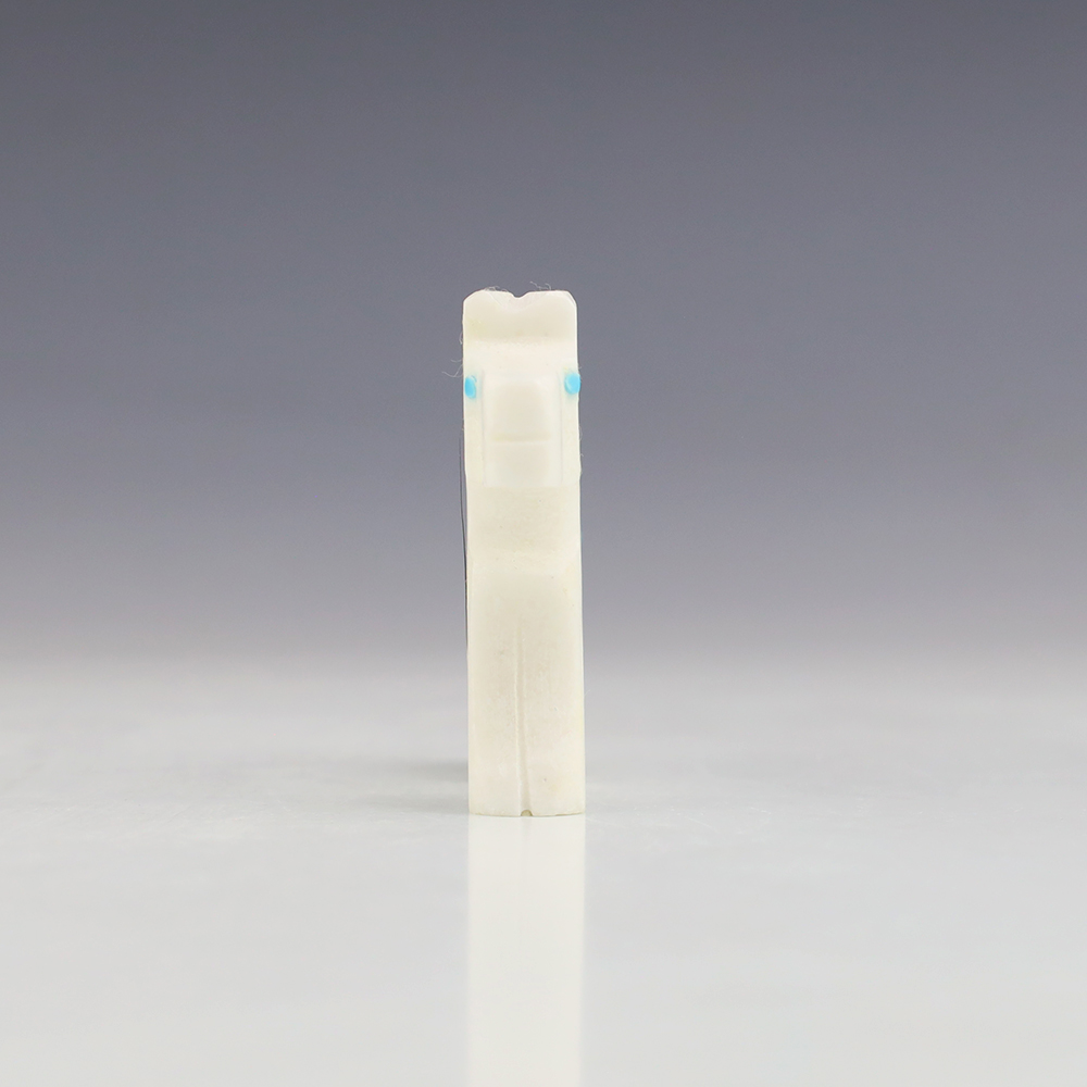Zuni artist Gabe Sice hand carved this lovely maiden fetish. Made out of antler with intricate detail and inlaid with natural Sleeping Beauty Turquoise, Mediterranean Coral, and Penn Shell. This maiden would make a great addition to your Native American or Zuni fetish collection. Signed 2 3/8” tall x 3/4”...