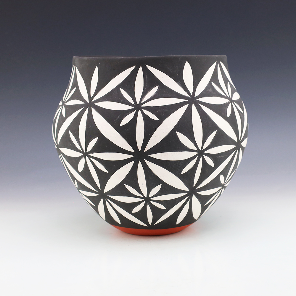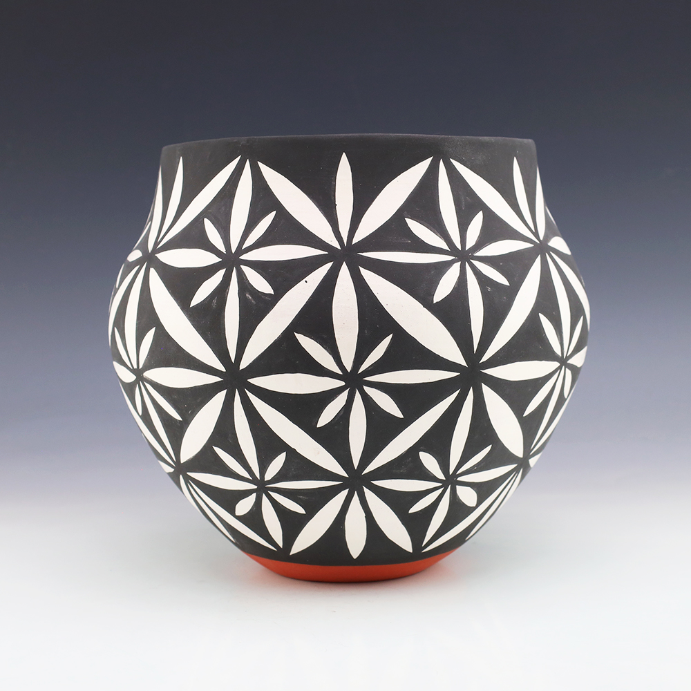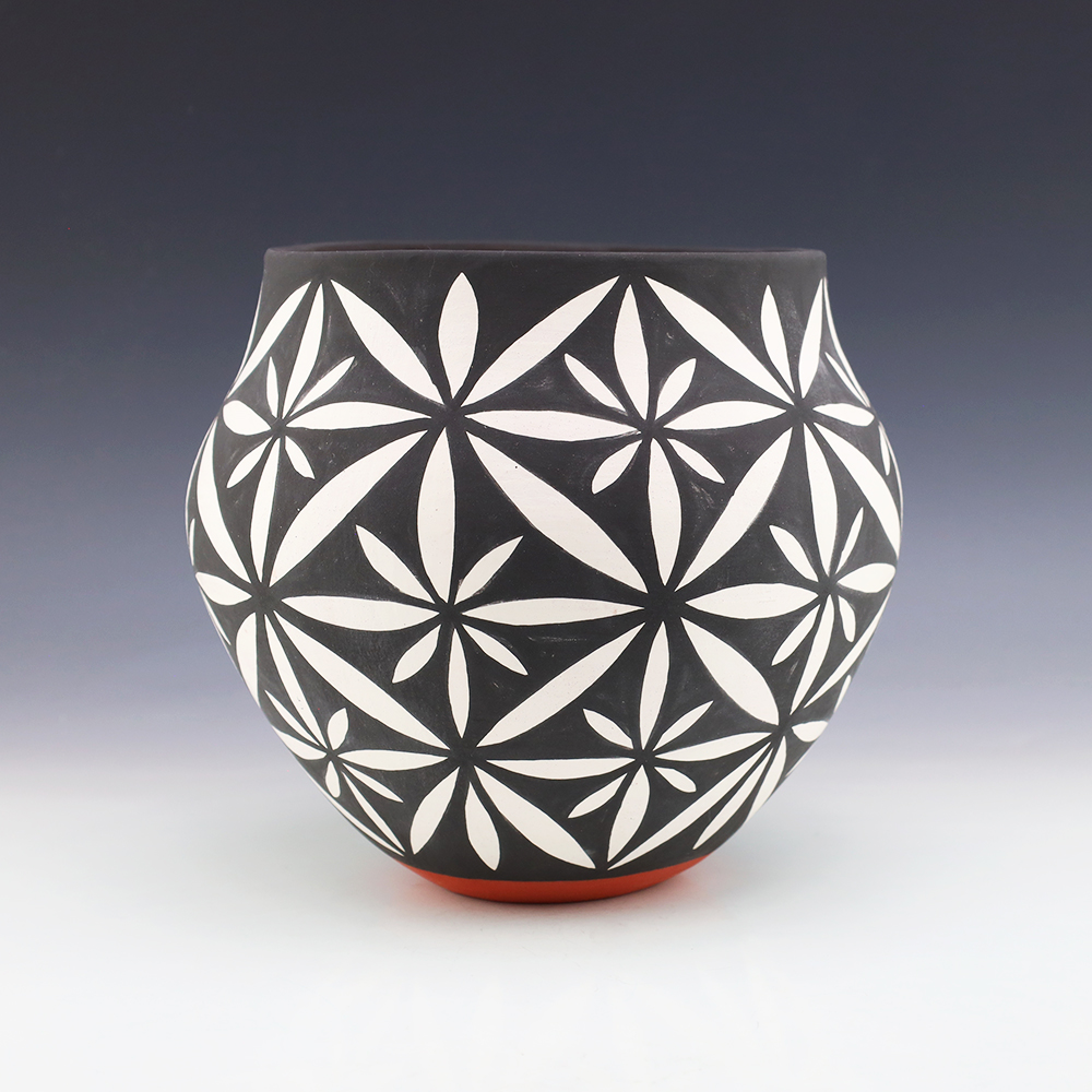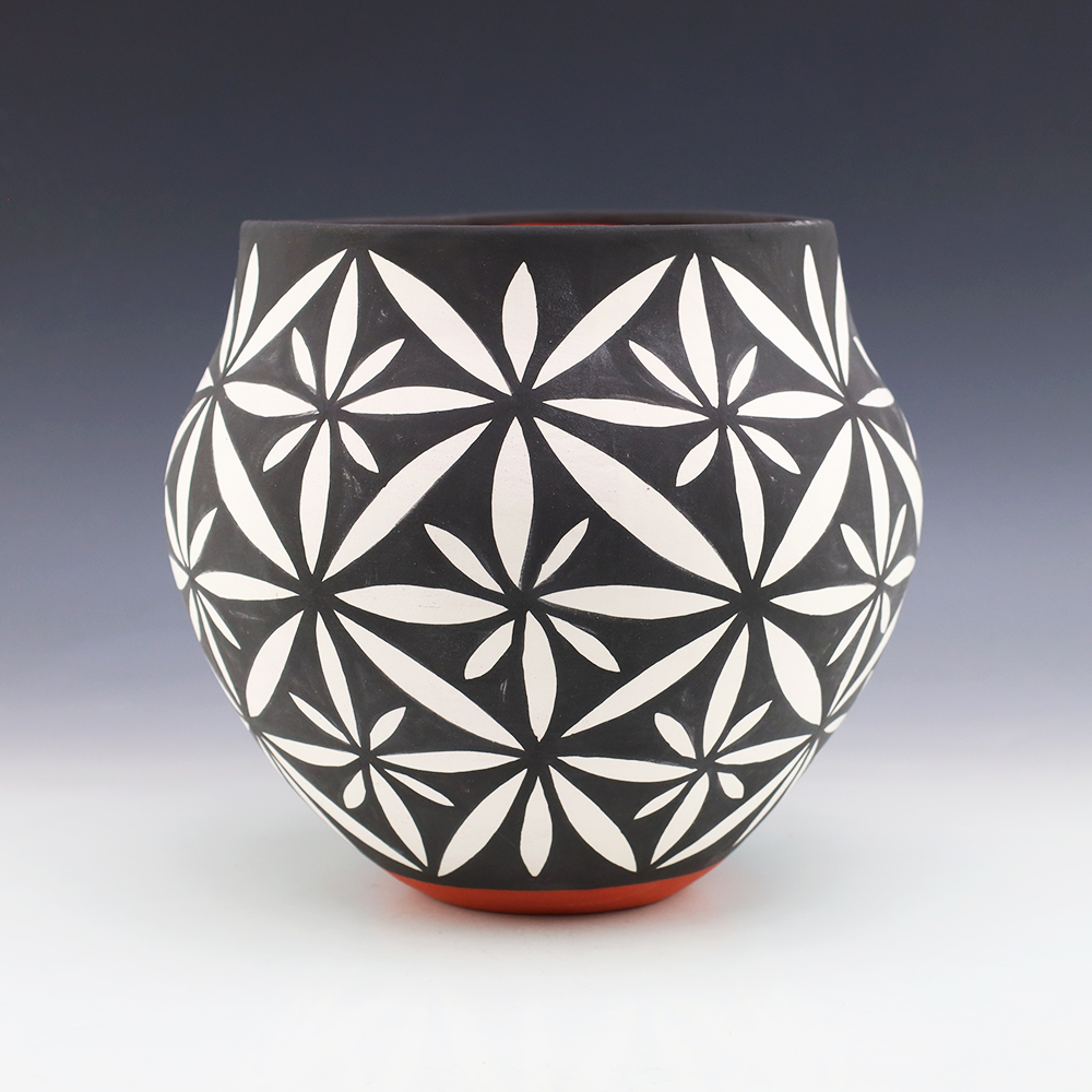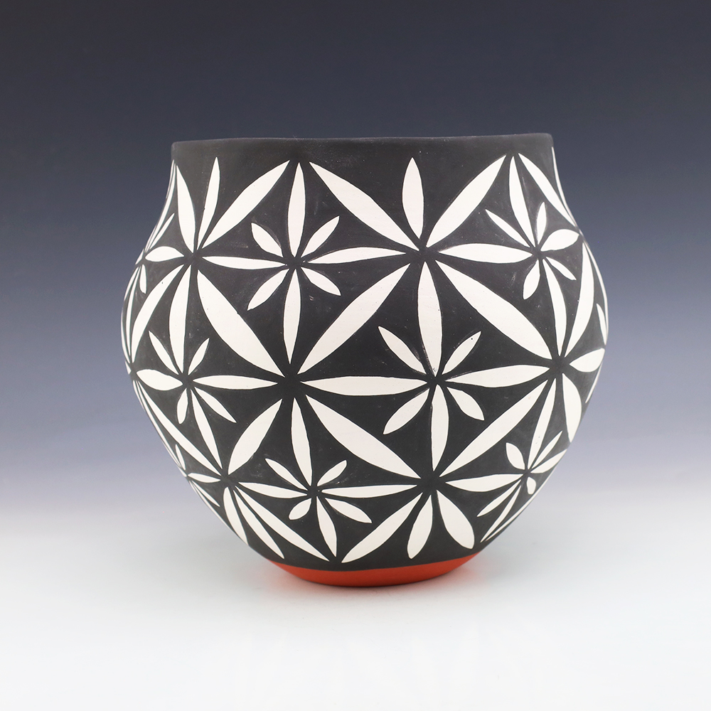 Acoma Pueblo is regarded as the oldest continuously inhabited community in the United States. Traditional pottery of Acoma is strongly recognized for fluted rims, thin walls and geometric design. Acoma pottery is made using a slate-like clay found within the hills surrounding the Pueblo. When fired using traditional methods, this clay allows the potters to form very thin walls, a common and sought after characteristic of Acoma pottery.