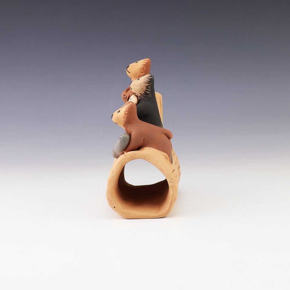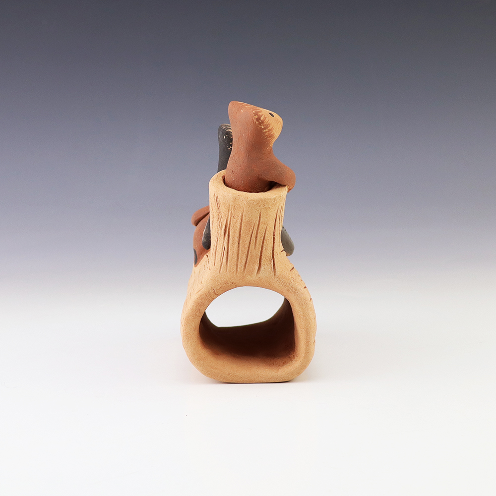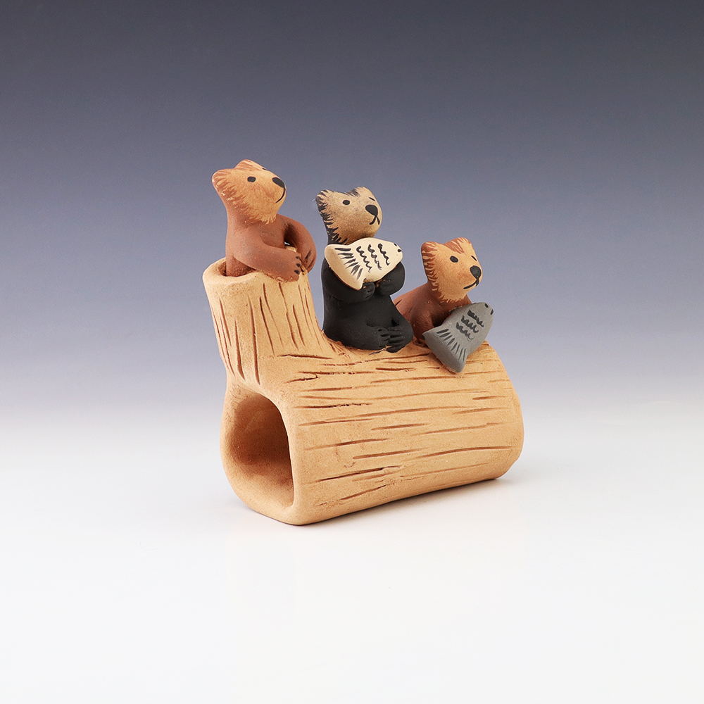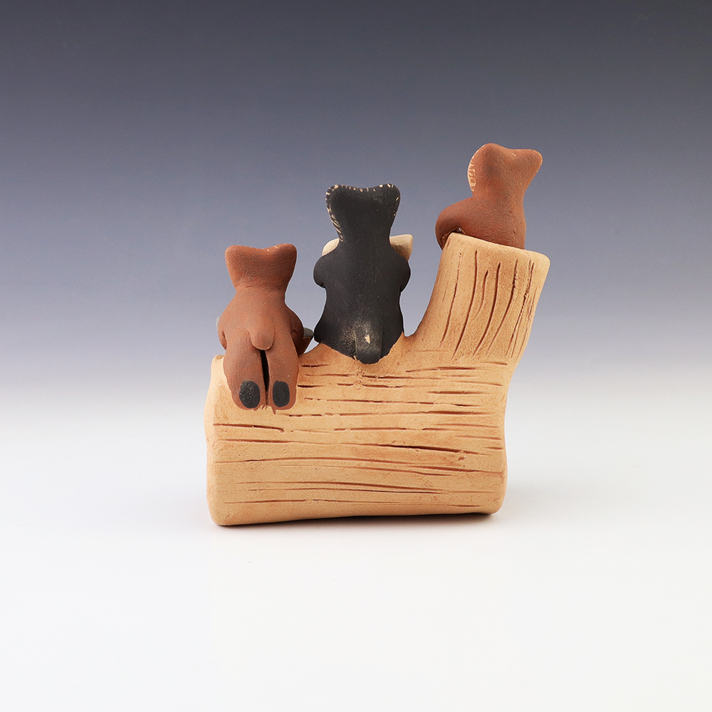 A charming addition to any art or pottery collection. Birdell “Vine Flower” Bourdon from the Santa Clara Pueblo, made this pottery bear with natural clay. Birdell continues a long tradition of hand coiling pottery. She was taught the traditional methods by her mother, Marie Sisneros Askan, and she has been...