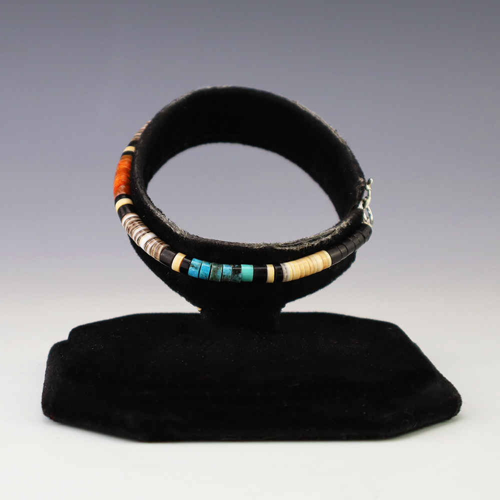 NATIVE AMERICAN ZUNI STERLING SILVER & INLAY BRACELET BY GLENDIS TSADIASI