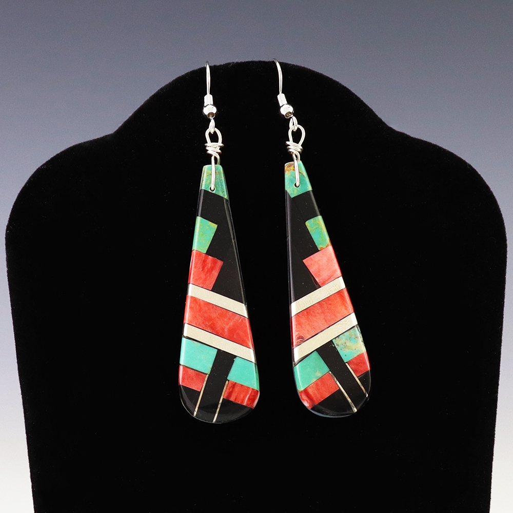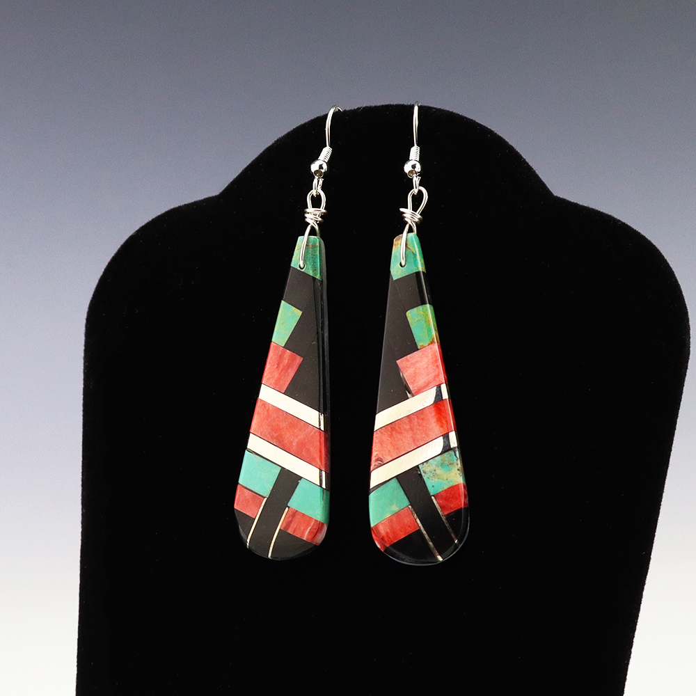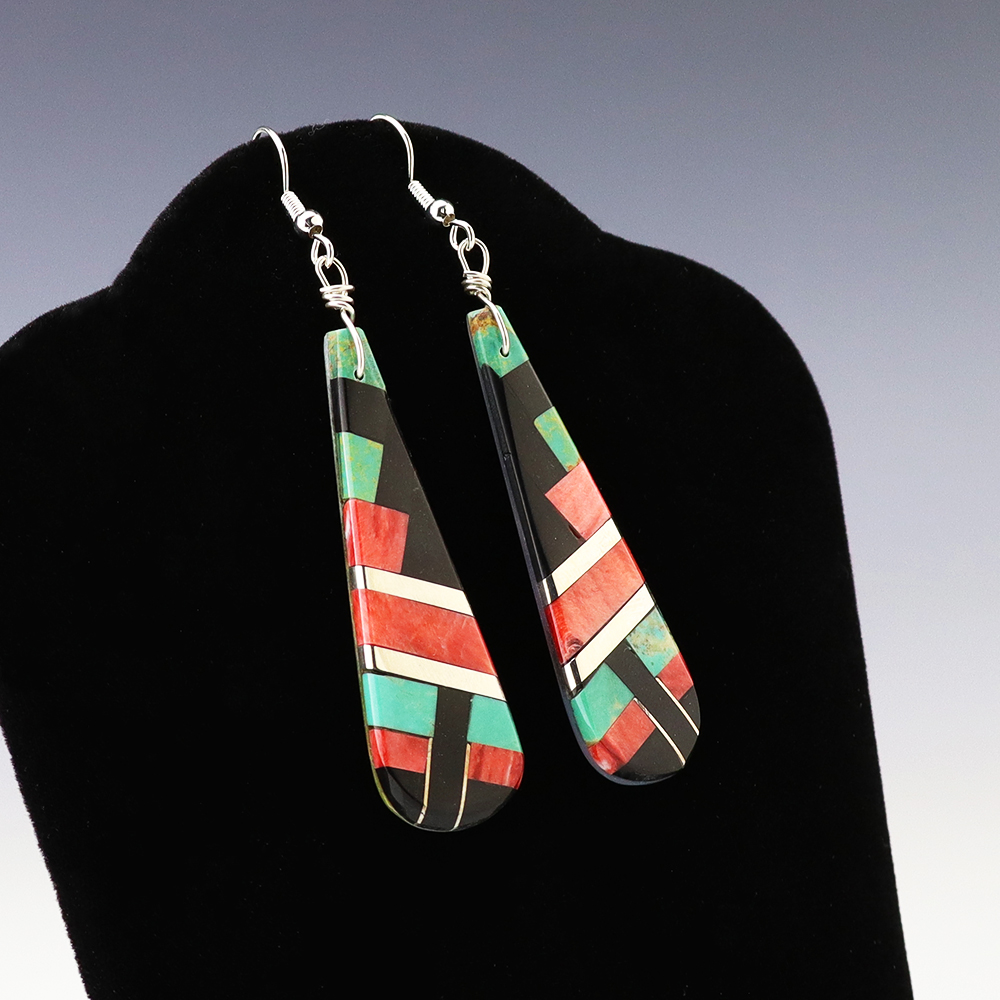 ZUNI MOTHER OF PEARL & TURQUOISE EARRINGS BY NANCY AND SHELDON WESTIKA