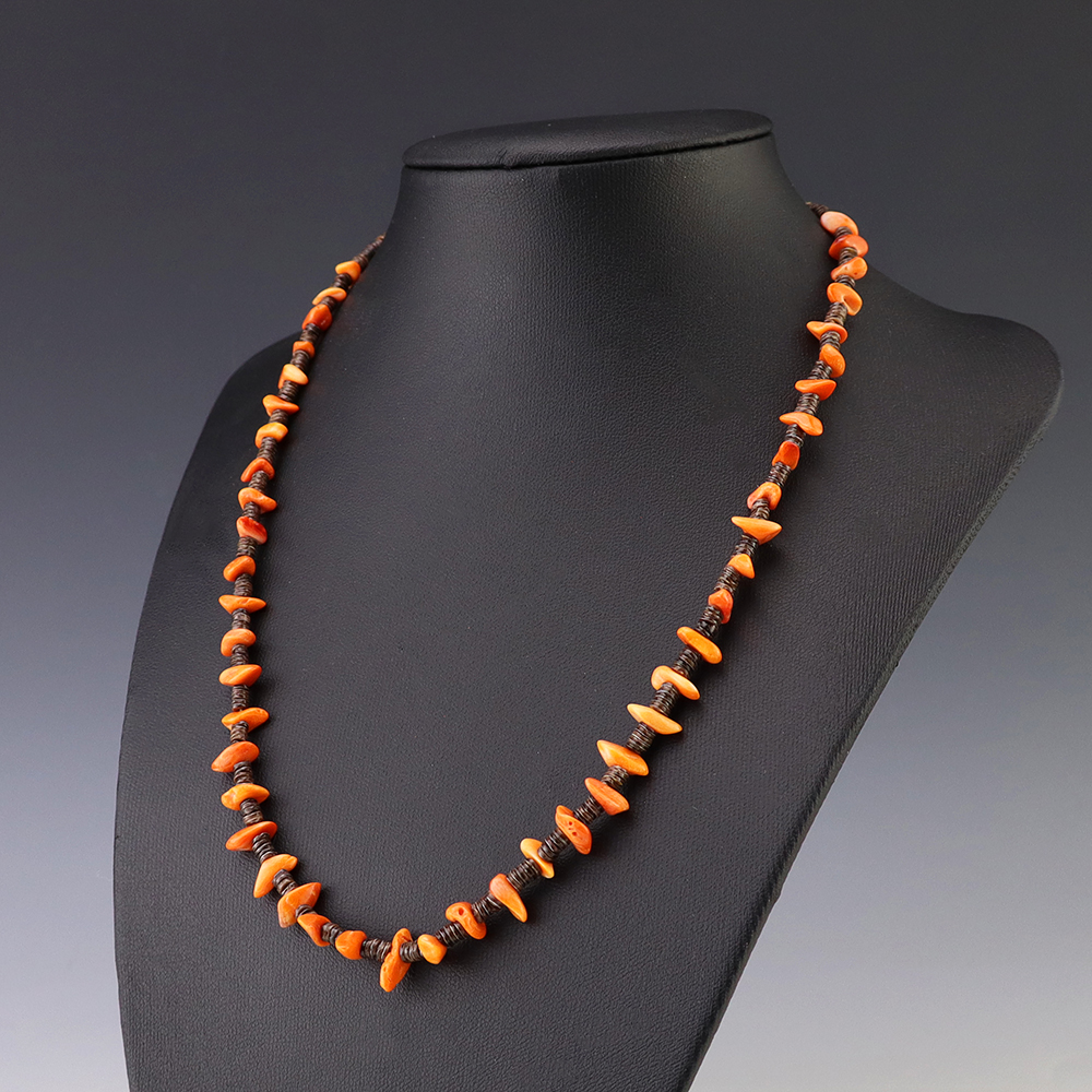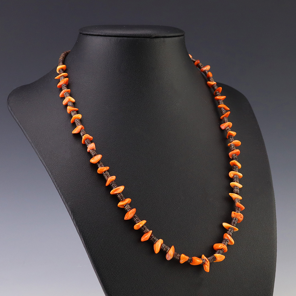 Kewa (Santo Domingo) artists are known for their heishi. The word “heishi“ means “shell” in the Keresan language. Traditionally Kewa jewelry makers created their heishi jewelry out of shell. The shell is hand cut into a flat disc. Today, other stones that Santo Domingo artists cut in this manner, are also referred to as heishi. With modern tools and innovations, artists can create different styles of beads and use different gemstones like turquoise, coral, jet, serpentine, and spiny oyster.