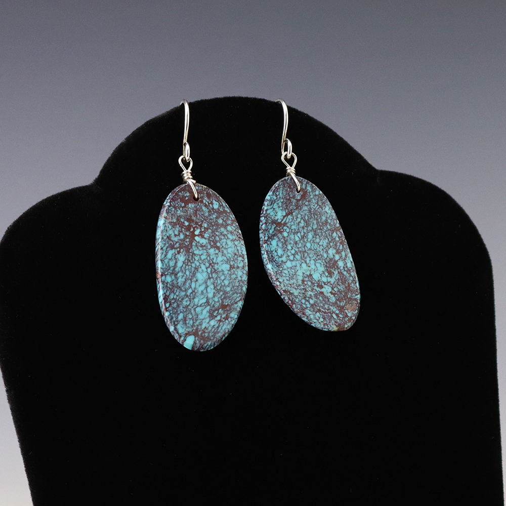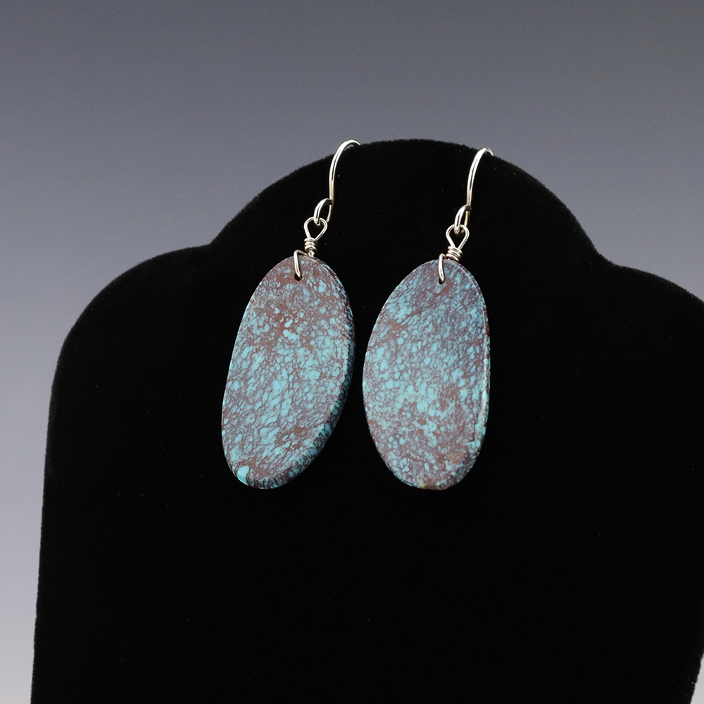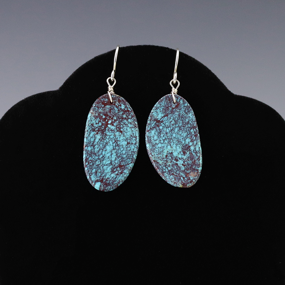 TURQUOISE & HENNA LIMESTONE EARRINGS BY NANCY AND SHELDON WESTIKA ZUNI