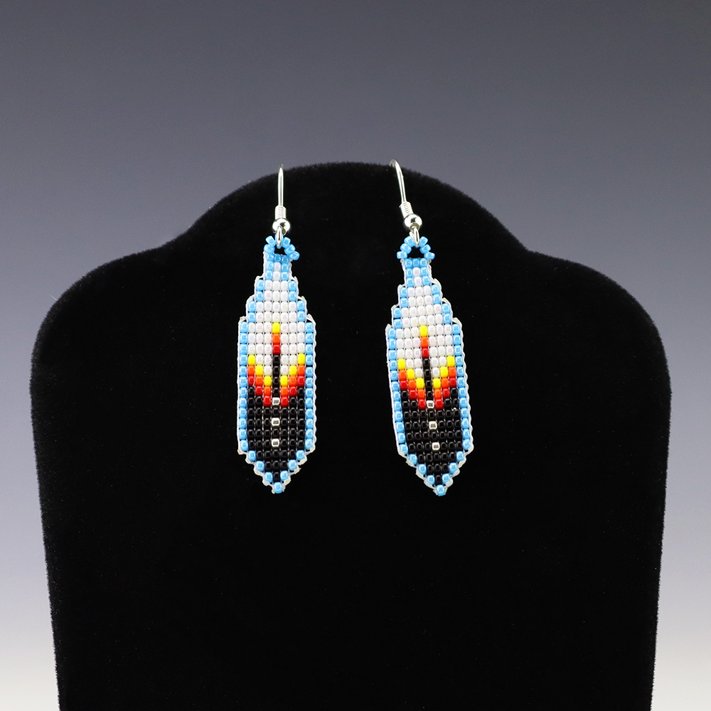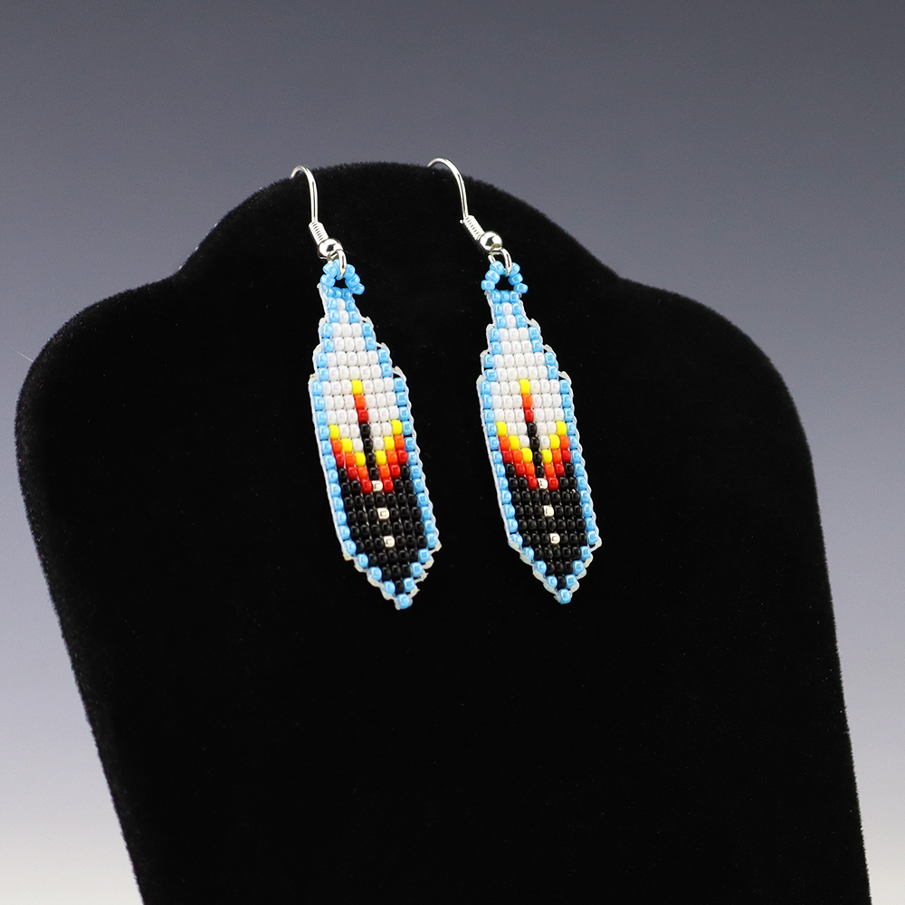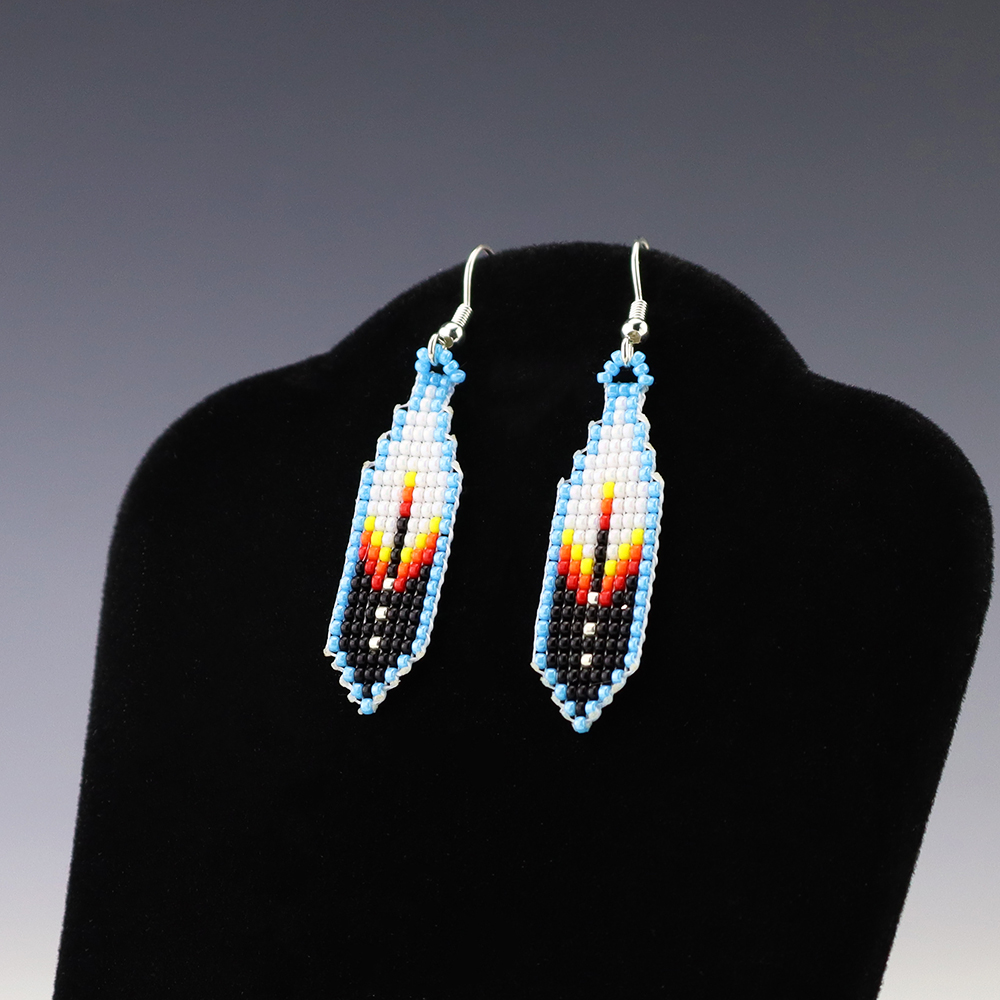 Gorgeous beaded feather earrings by Deandra Goldtooth. Great combination of colors.