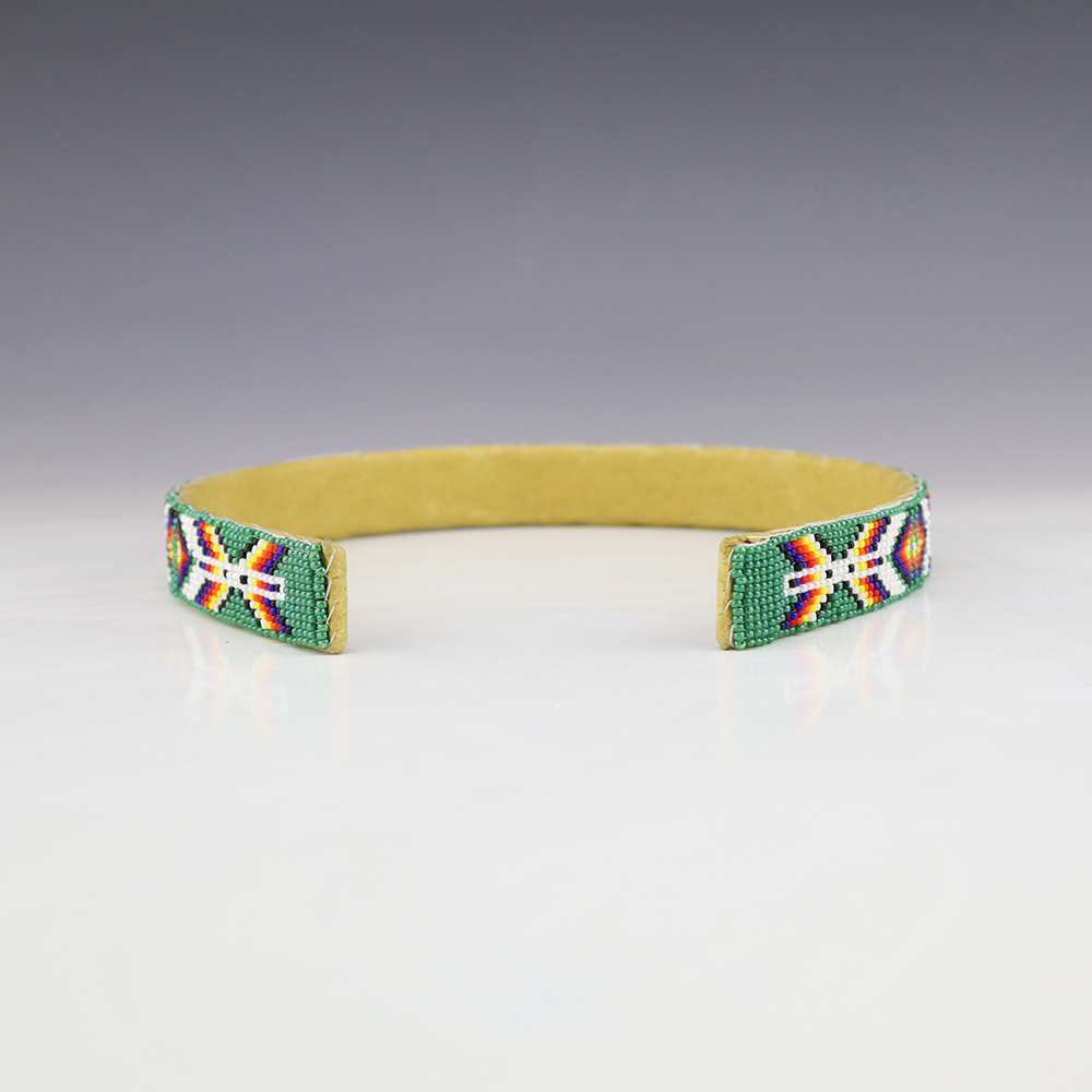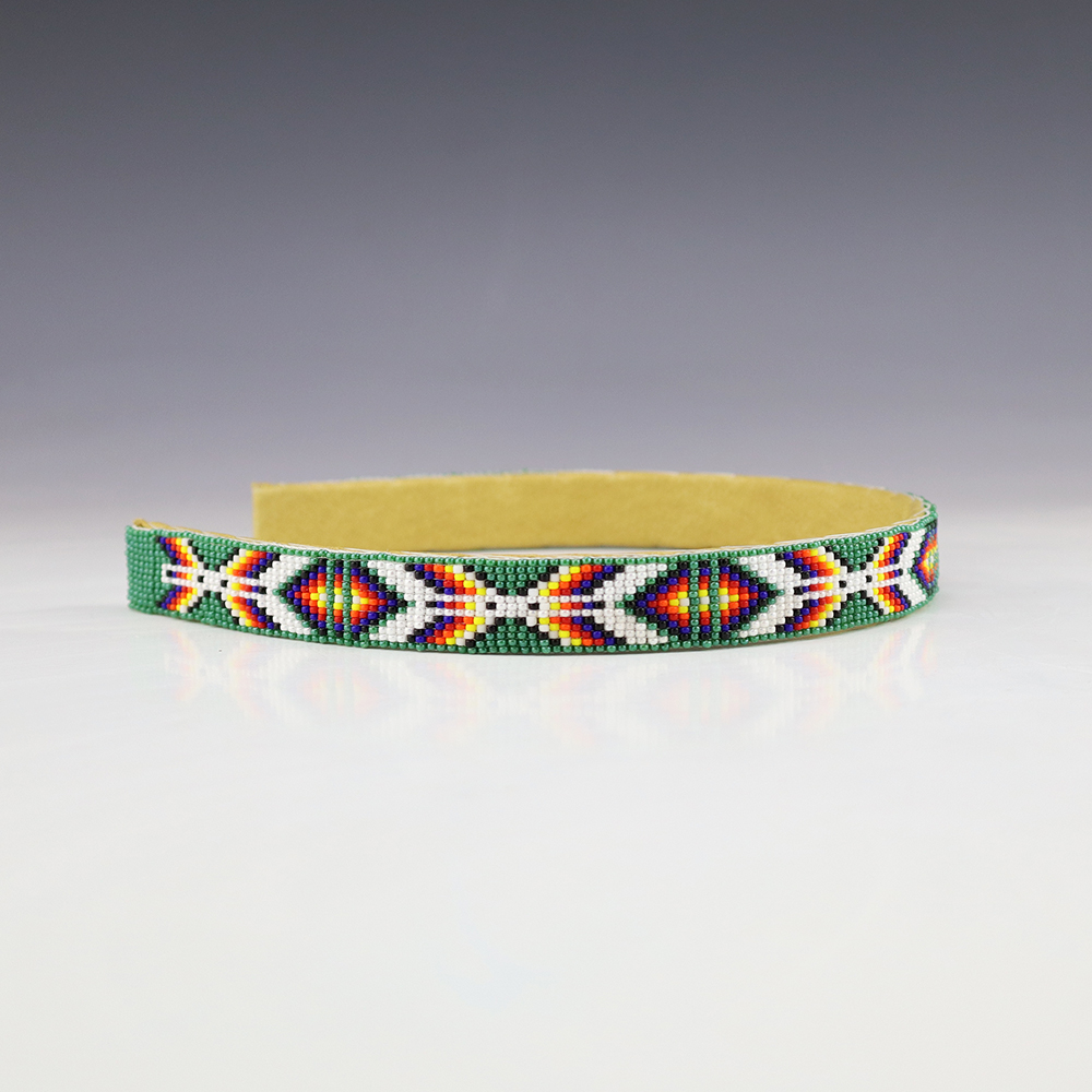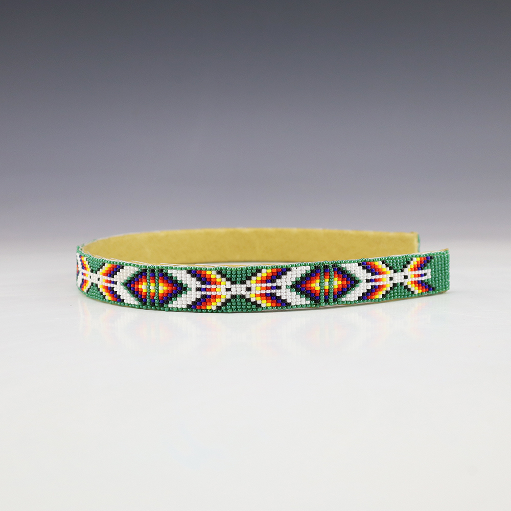 Great colors and patterns in this hand beaded head band. Hand made by Navajo artist Habana Thomas.