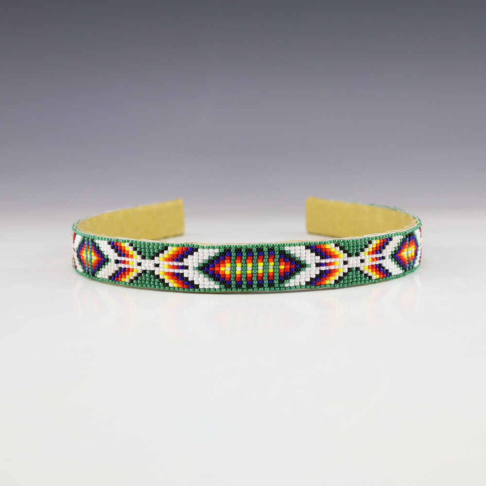 Great colors and patterns in this hand beaded head band. Hand made by Navajo artist Habana Thomas.