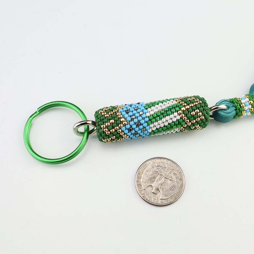 Carry your keys around in style! Navajo artist Charlene Jackson hand beaded this stellar key ring. Great colors and patterns. 10 5/8″ x 5/8″ x 5/8″ Artist card included When trade beads were introduced to Native Americans, they made these colorful glass beads part of their jewelry. Over the years,...
