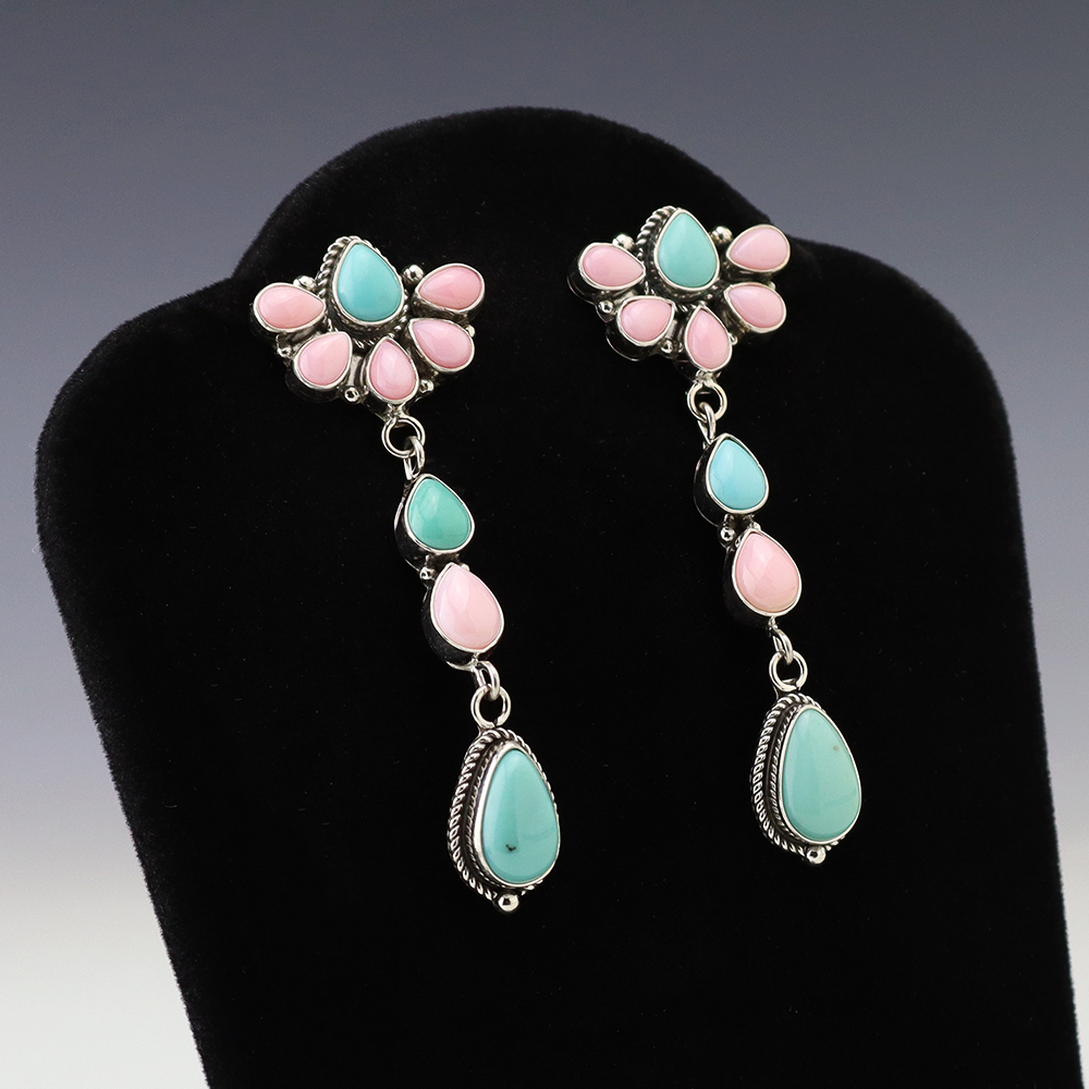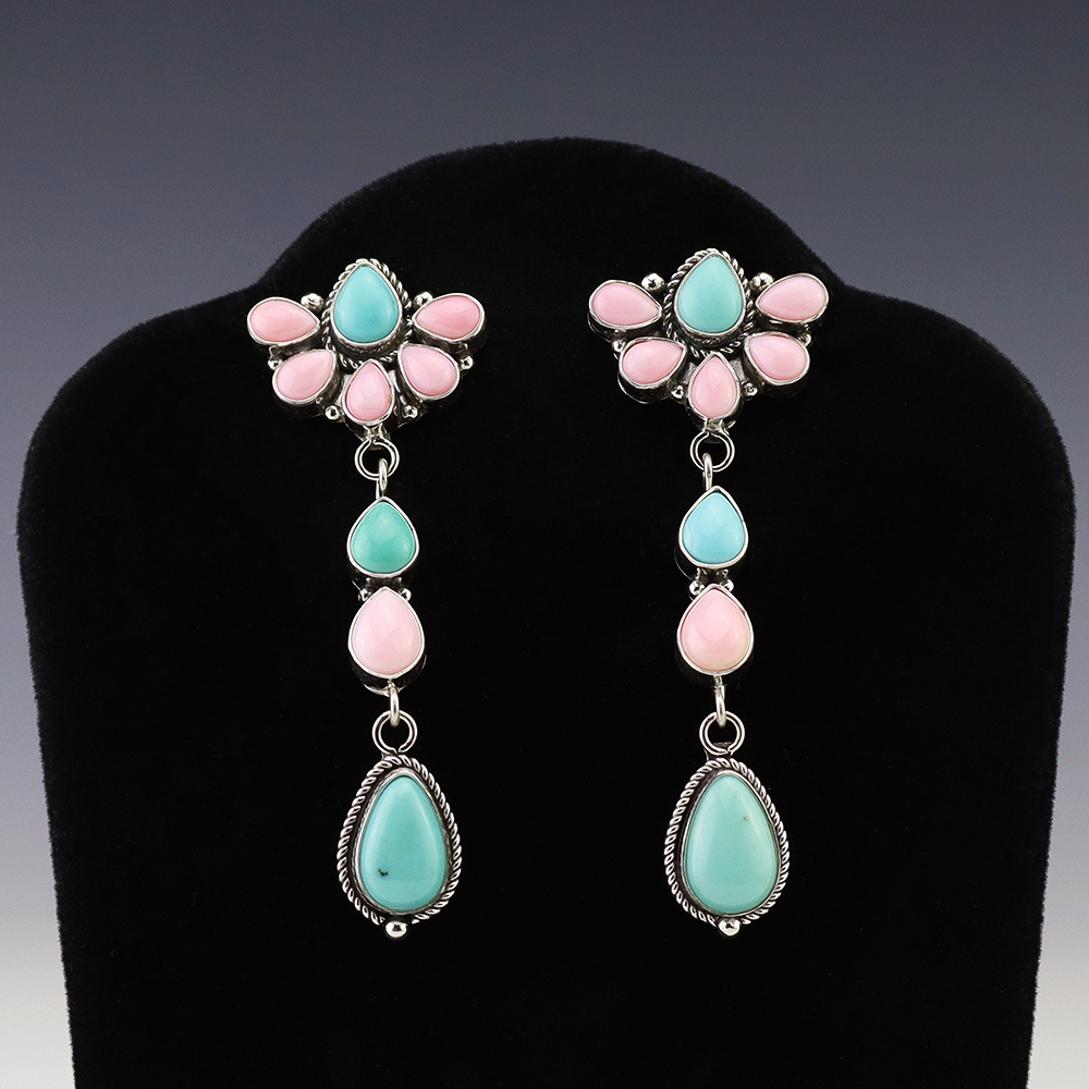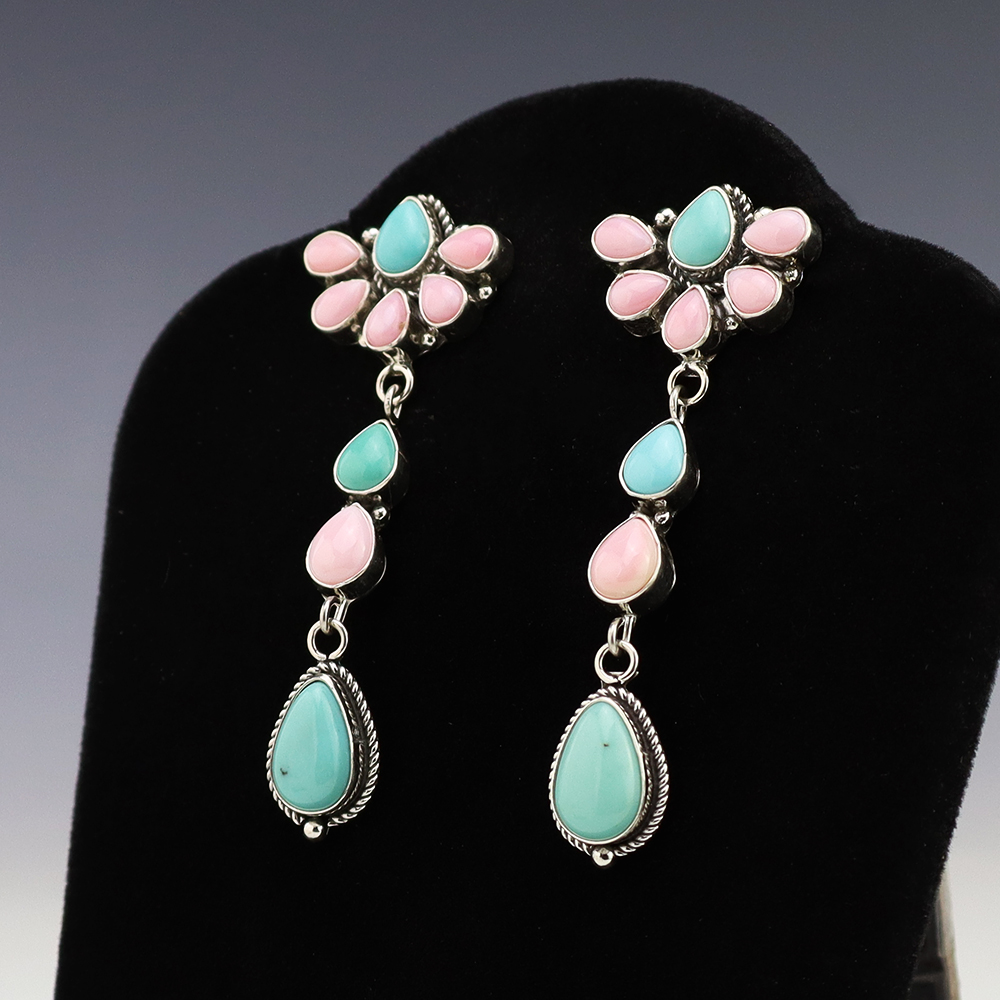 NATIVE AMERICAN ZUNI TURQUOISE EARRINGS BY NANCY & SHELDON WESTIKA