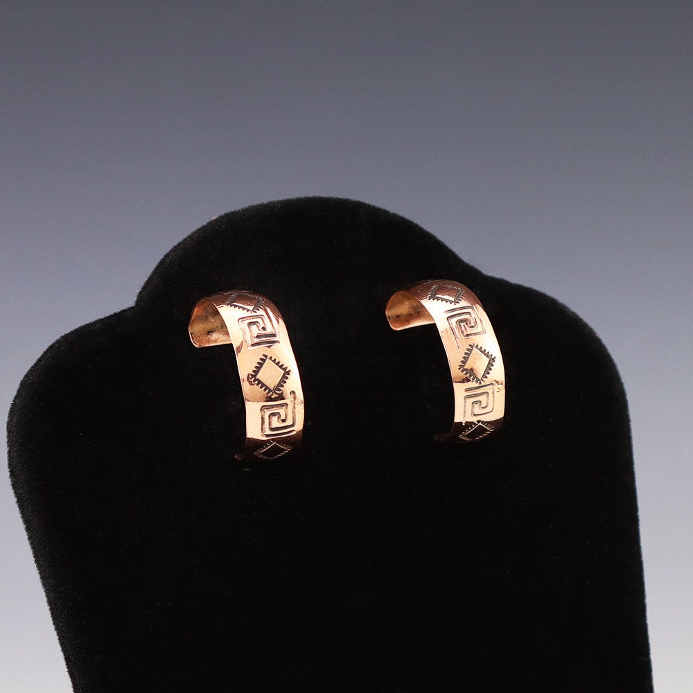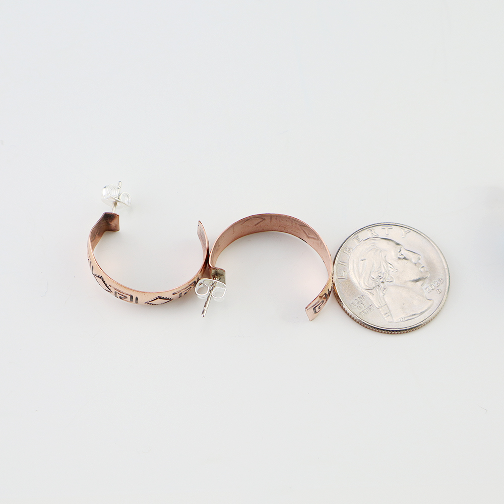 Lovely hoop earrings made out of copper by Navajo artist Felicia Etsitty. These earrings will become a versatile accessory in your jewelry collection. Weighs 4 grams.