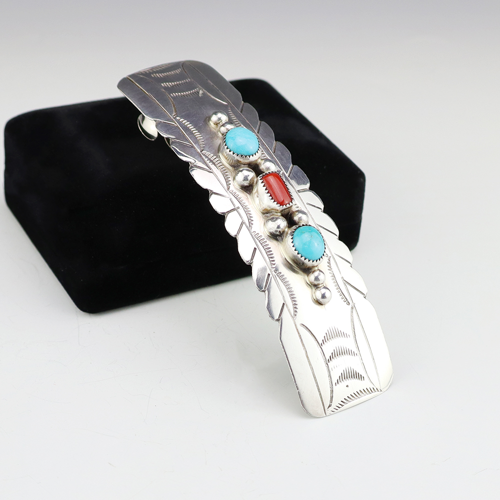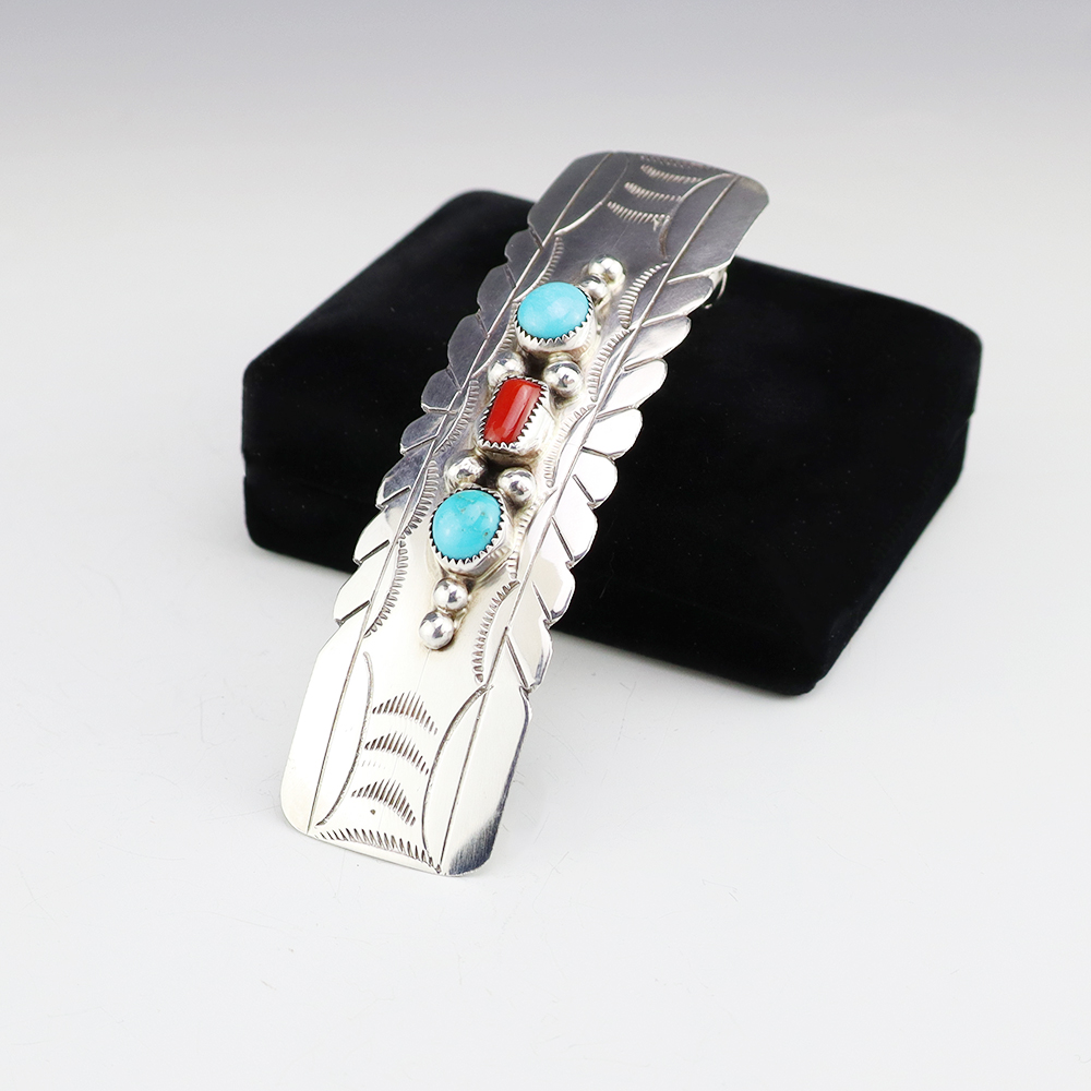 Around 1865, a Navajo Blacksmith Atsidi Sani who admired the silver adornments that the Spaniards and their horses had. Atsidi Sani got the Spaniards to teach him how to work with silver and began making silver conchos. This was the beginning of Navajo jewelry, and soon Atsidi taught his brother and many others how to silversmith. Traditionally, Navajo jewelers made silver jewelry with just stamp work and no stones. Today, they have expanded their jewelry making techniques and they create beautiful jewelry using sand casting, stone inlay, and overlay.