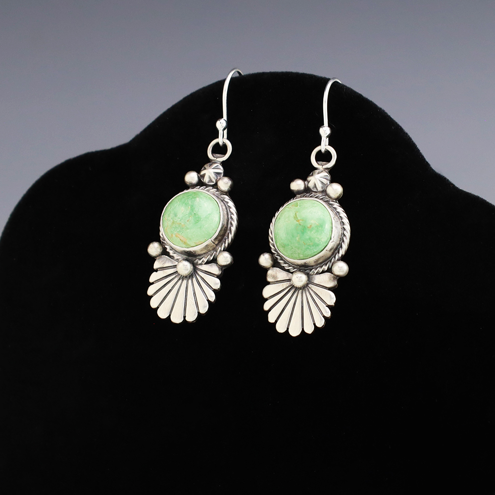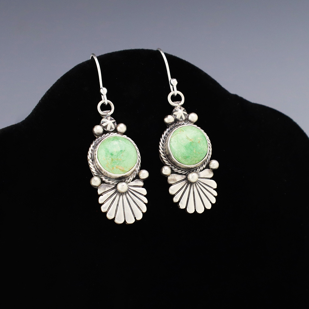The Navajos began working with silver in the 19th century, and began making things like buckles, bridles, buttons, rings, canteens, hollow beads, earrings, crescent-shaped pendants (called “najas”), bracelets, crosses, powder chargers, tobacco canteens, and conchos (for belts). Their silversmithing skills has evolved and changed throughout the years, and in about 1880 Navajo silversmiths started to set turquoise in their silver work. Traditionally, Navajo artists worked with jewelry techniques like repousee and stamp work, but today they explored in other Native American jewelry making techniques like Zuni inlay work and Hopi overlay work.