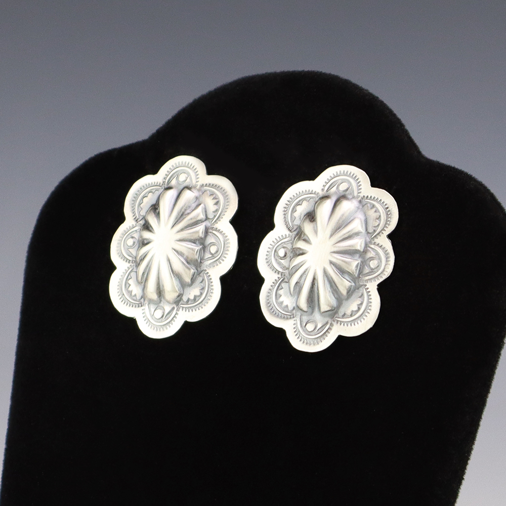 The Navajos began working with silver in the 19th century, and began making things like buckles, bridles, buttons, rings, canteens, hollow beads, earrings, crescent-shaped pendants (called “najas”), bracelets, crosses, powder chargers, tobacco canteens, and conchos (for belts). Their silversmithing skills has evolved and changed throughout the years, and in about 1880 Navajo silversmiths started to set turquoise in their silver work. Traditionally, Navajo artists worked with jewelry techniques like repousee and stamp work, but today they explored in other Native American jewelry making techniques like Zuni inlay work and Hopi overlay work.