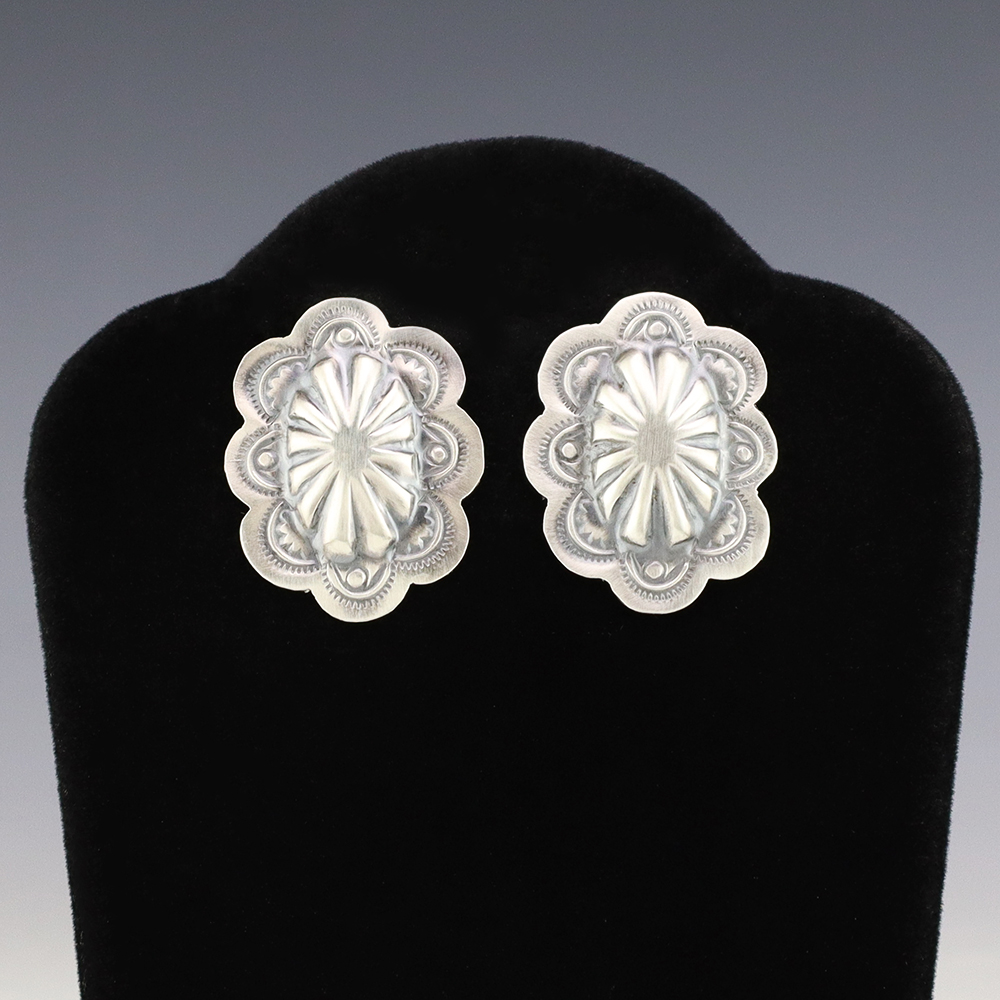 The Navajos began working with silver in the 19th century, and began making things like buckles, bridles, buttons, rings, canteens, hollow beads, earrings, crescent-shaped pendants (called “najas”), bracelets, crosses, powder chargers, tobacco canteens, and conchos (for belts). Their silversmithing skills has evolved and changed throughout the years, and in about 1880 Navajo silversmiths started to set turquoise in their silver work. Traditionally, Navajo artists worked with jewelry techniques like repousee and stamp work, but today they explored in other Native American jewelry making techniques like Zuni inlay work and Hopi overlay work.