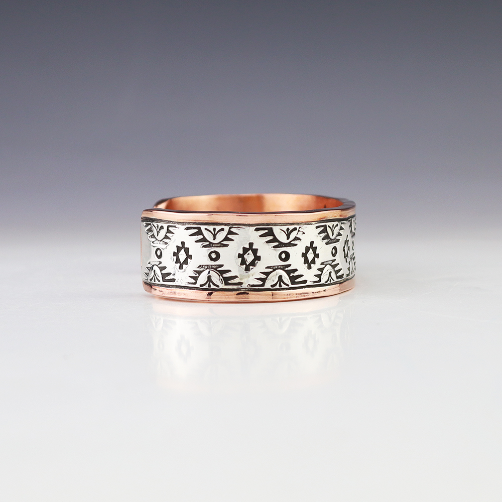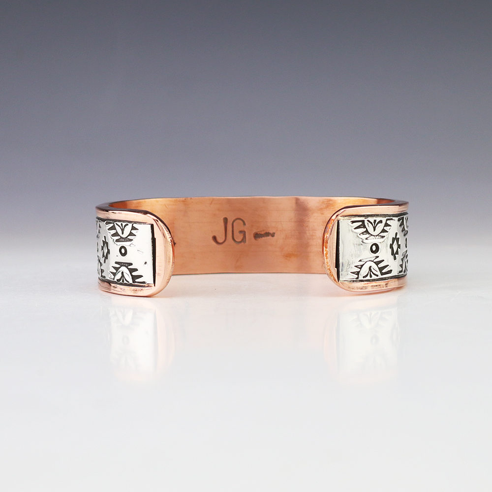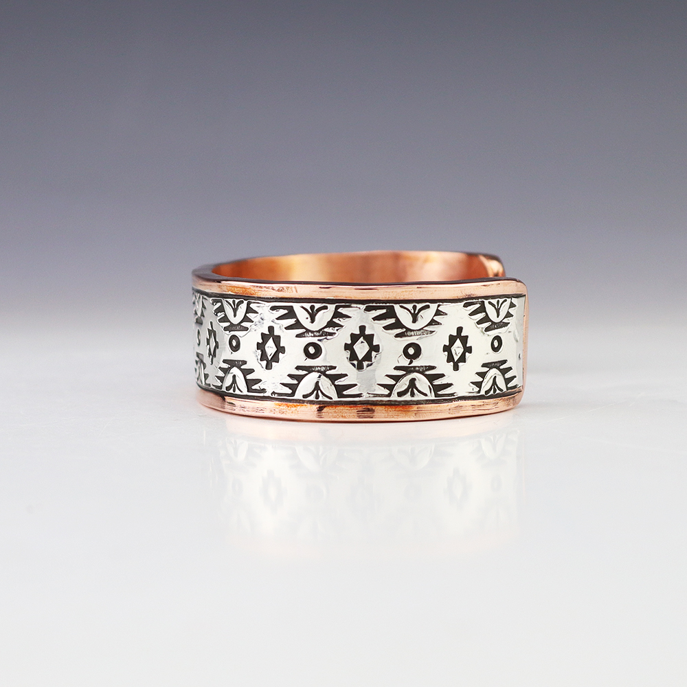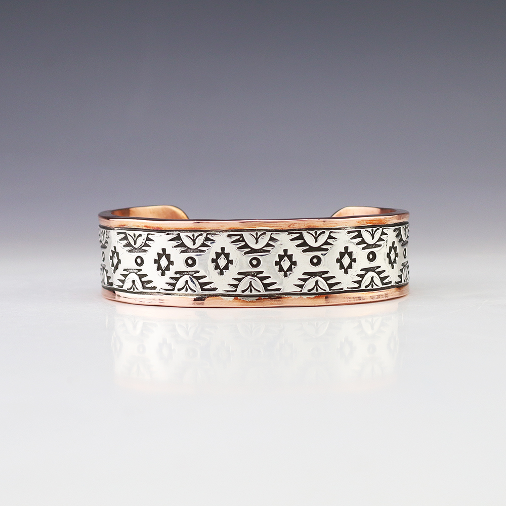 The Navajos began working with silver in the 19th century, and began making things like buckles, bridles, buttons, rings, canteens, hollow beads, earrings, crescent-shaped pendants (called “najas”), bracelets, crosses, powder chargers, tobacco canteens, and conchos (for belts). Their silversmithing skills has evolved and changed throughout the years, and in about 1880 Navajo silversmiths started to set turquoise in their silver work. Traditionally, Navajo artists worked with jewelry techniques like repousee and stamp work, but today they explored in other Native American jewelry making techniques like Zuni inlay work and Hopi overlay work