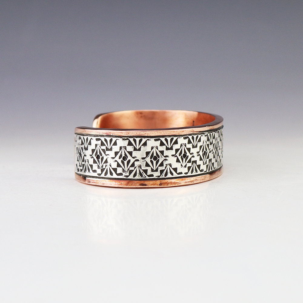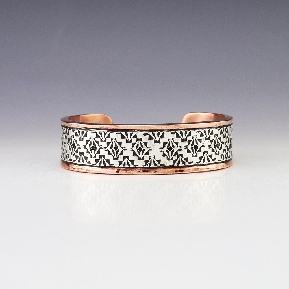 The Navajos began working with silver in the 19th century, and began making things like buckles, bridles, buttons, rings, canteens, hollow beads, earrings, crescent-shaped pendants (called “najas”), bracelets, crosses, powder chargers, tobacco canteens, and conchos (for belts). Their silversmithing skills has evolved and changed throughout the years, and in about 1880 Navajo silversmiths started to set turquoise in their silver work. Traditionally, Navajo artists worked with jewelry techniques like repousee and stamp work, but today they explored in other Native American jewelry making techniques like Zuni inlay work and Hopi overlay work