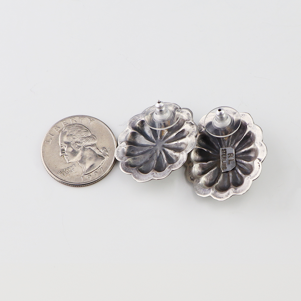 Zuni artist, Diane Lonjose created these outstanding earrings. Made out of sterling silver and set with natural Serpentine stones. Zuni artists are known for their lapidary work. Weighs 18 gram. Signed 1 1/8″ wide x 2 3/8” tall Artist card included Zuni Pueblo is the largest pueblo in New Mexico,...