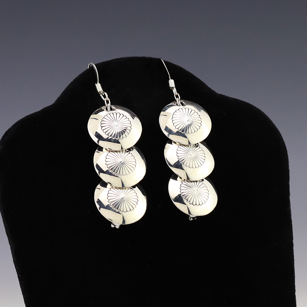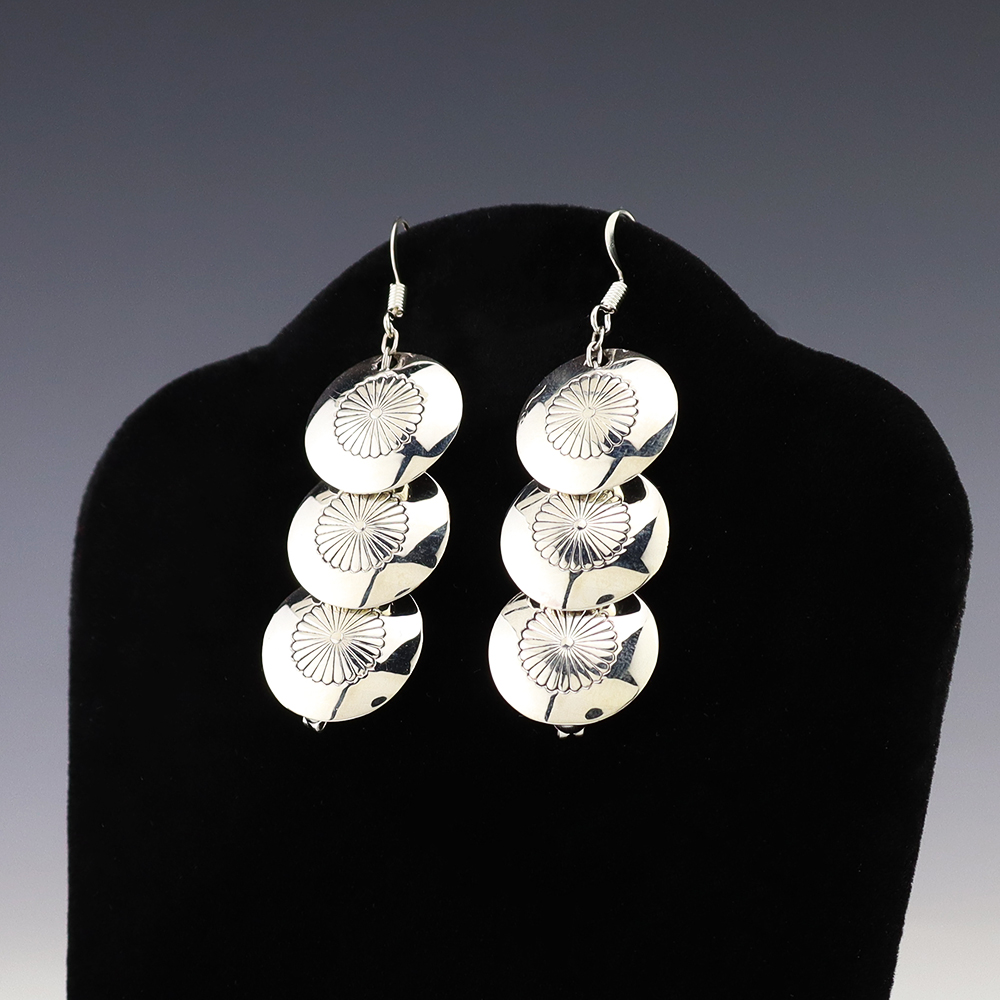 The Navajos began working with silver in the 19th century, and began making things like buckles, bridles, buttons, rings, canteens, hollow beads, earrings, crescent-shaped pendants (called “najas”), bracelets, crosses, powder chargers, tobacco canteens, and conchos (for belts). Their silversmithing skills has evolved and changed throughout the years, and in about 1880 Navajo silversmiths started to set turquoise in their silver work. Traditionally, Navajo artists worked with jewelry techniques like repousee and stamp work, but today they explored in other Native American jewelry making techniques like Zuni inlay work and Hopi overlay work.