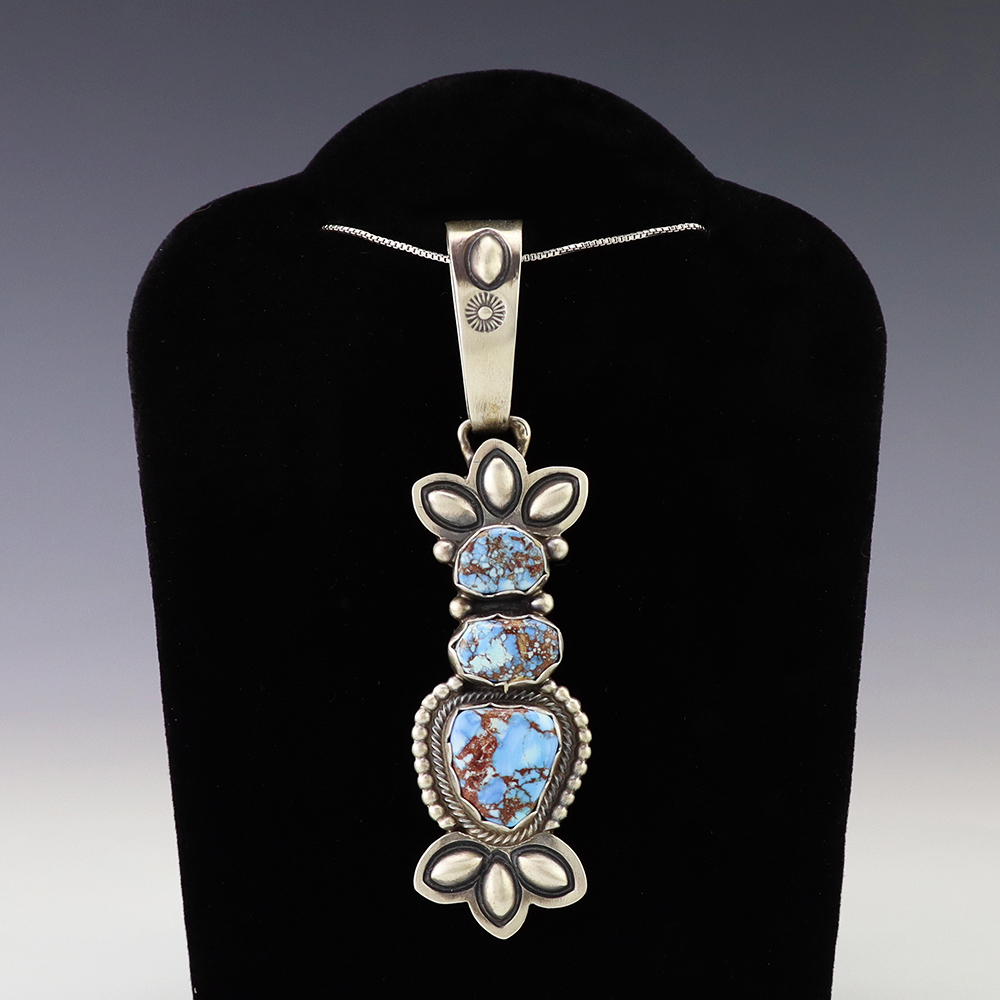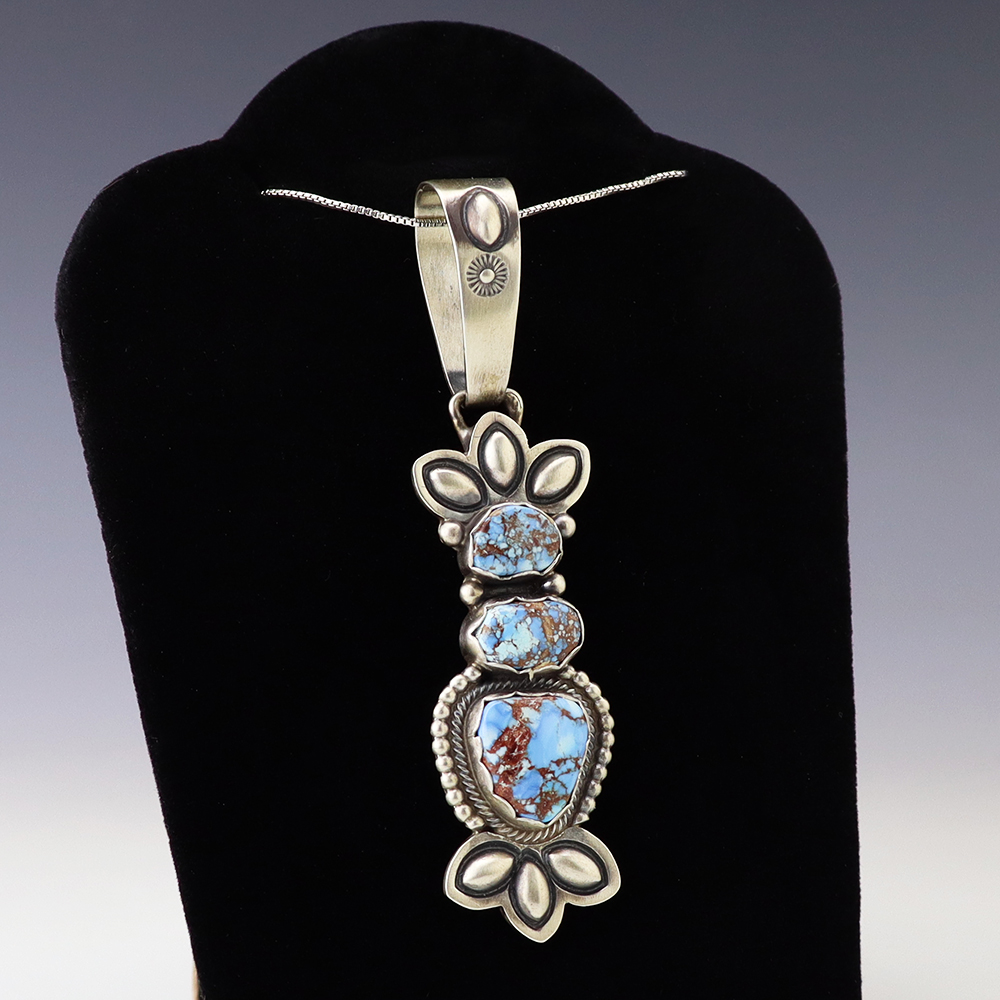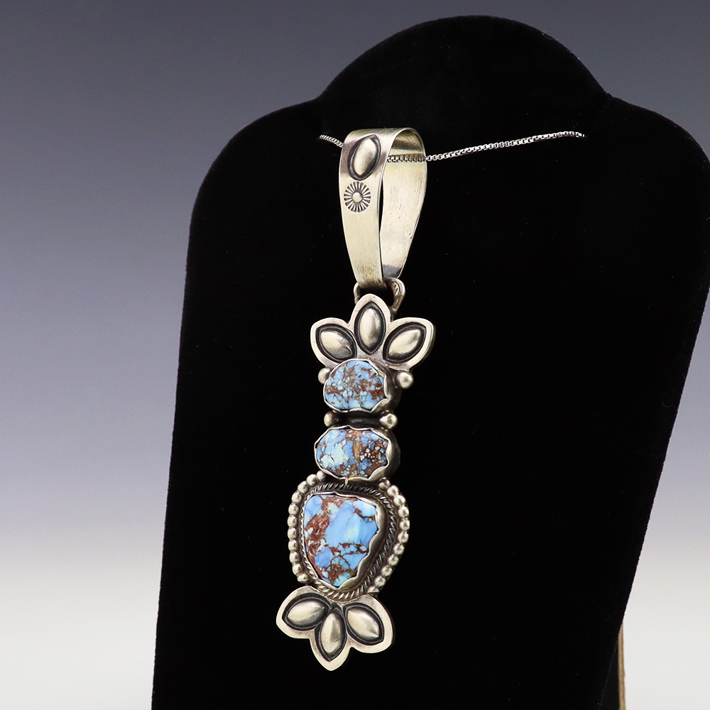 NATIVE AMERICAN NAVAJO STERLING SILVER & TURQUOISE NECKLACE BY GARY CUSTER
