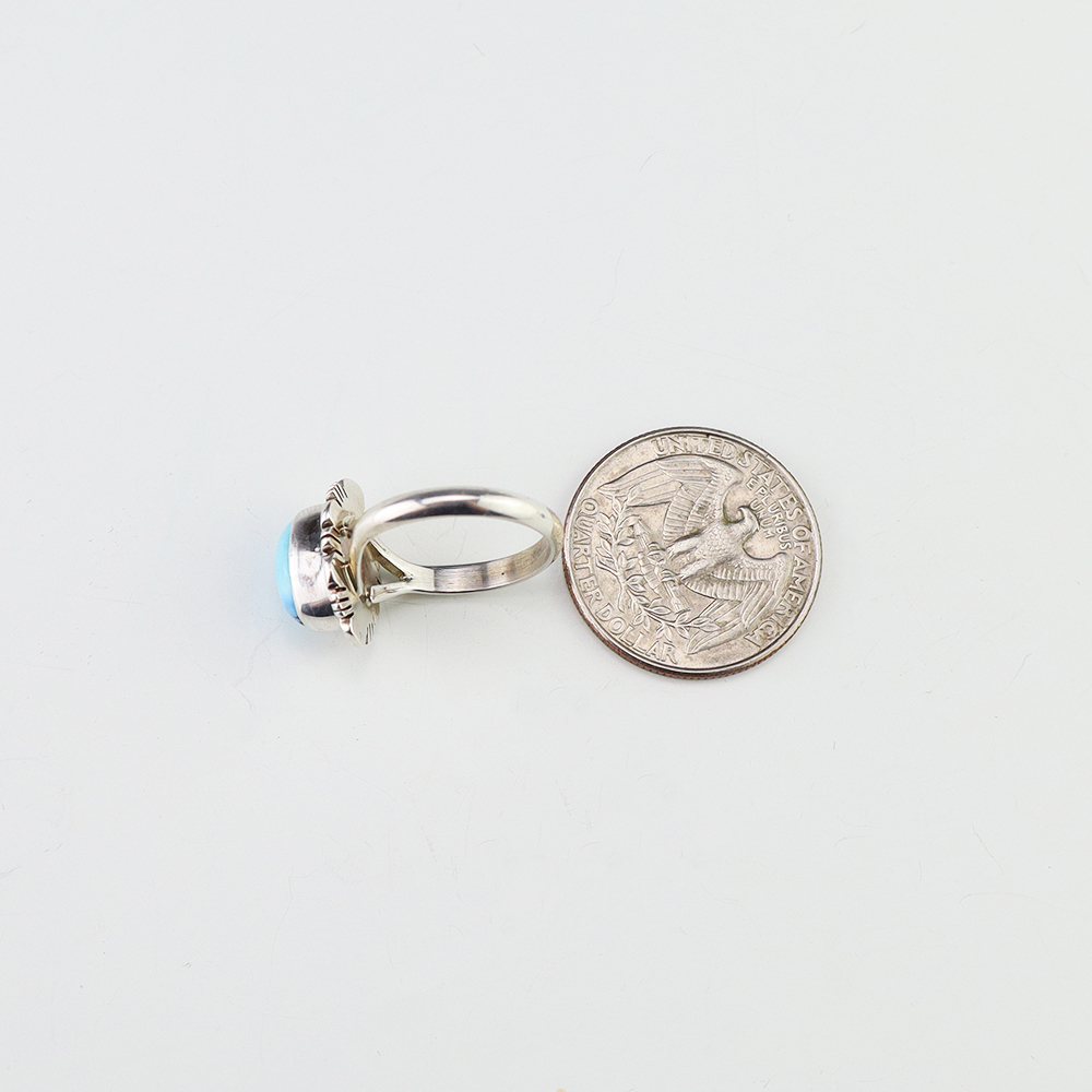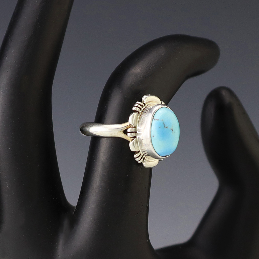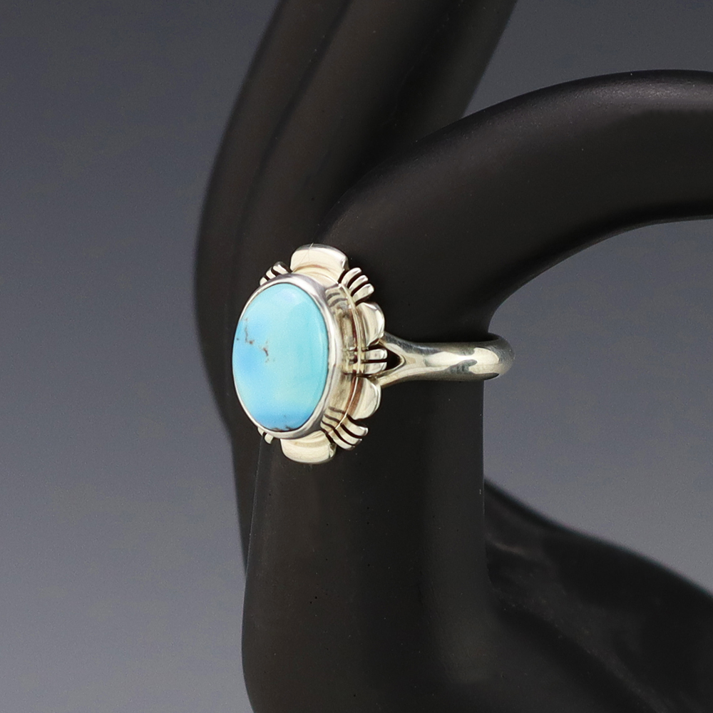 NATIVE AMERICAN TURQUOISE & JET RING BY NANCY & SHELDON WESTIKA 11 1/4