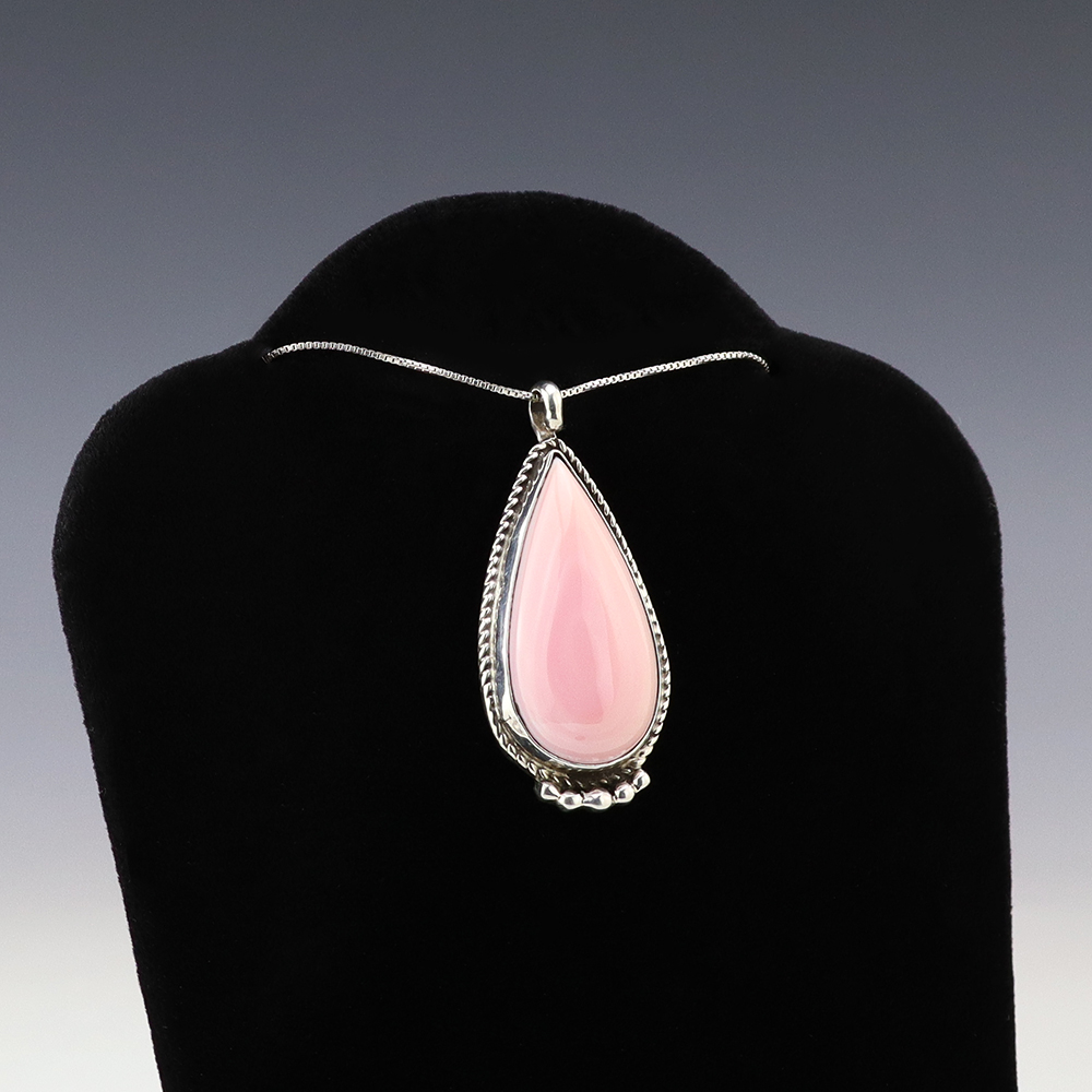Navajo silversmith Will Denetdale made this outstanding pendant. Great Rhodochrosite stone, that is surrounded by great silver work. A timeless beauty that you will enjoy for years to come. Weighs 6 grams. (Chain not included) Signed 3/4” wide x 1 3/8” long Artist card included The Navajos began working with...