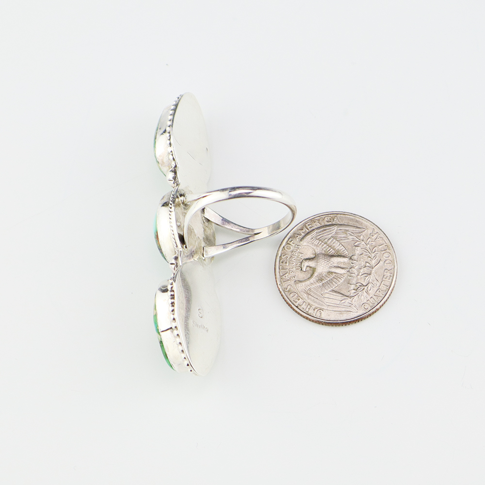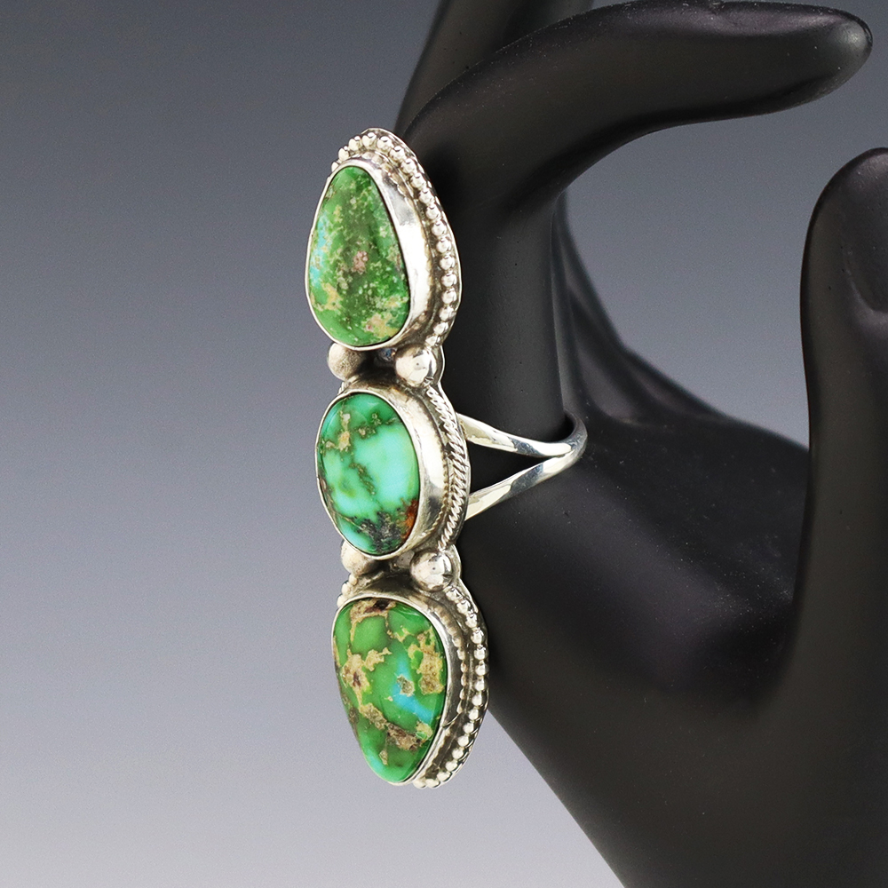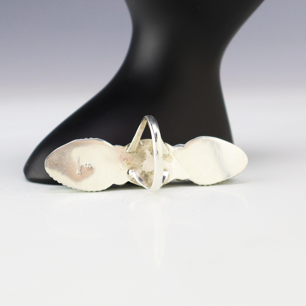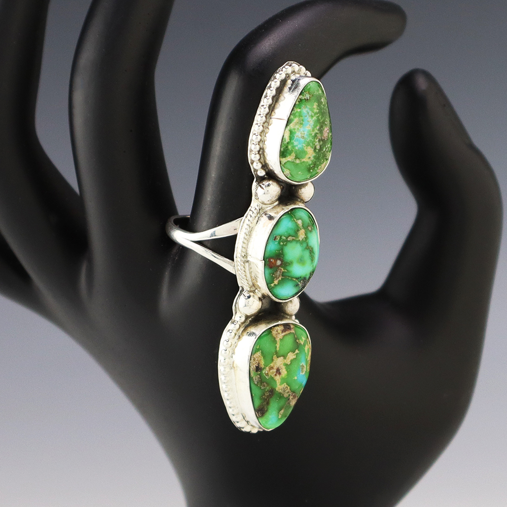 NATIVE AMERICAN TURQUOISE & JET RING BY NANCY & SHELDON WESTIKA 11 1/4