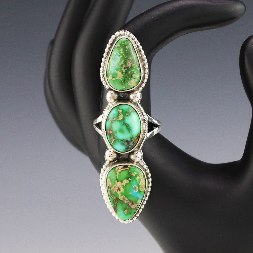 NATIVE AMERICAN TURQUOISE & JET RING BY NANCY & SHELDON WESTIKA 11 1/4