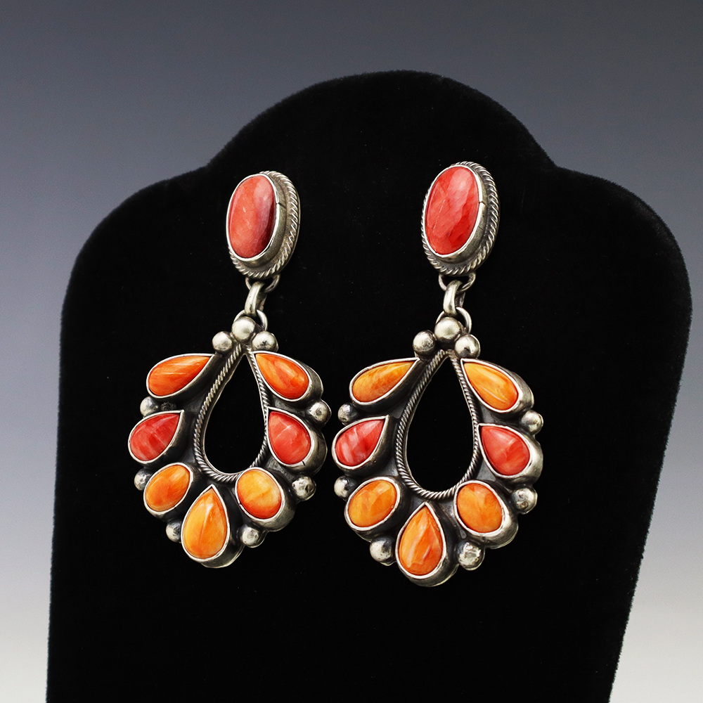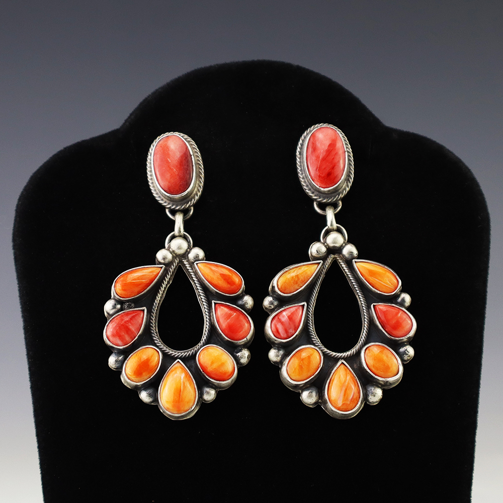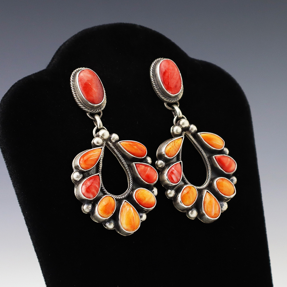 The Navajos began working with silver in the 19th century, and began making things like buckles, bridles, buttons, rings, canteens, hollow beads, earrings, crescent-shaped pendants (called “najas”), bracelets, crosses, powder chargers, tobacco canteens, and conchos (for belts). Their silversmithing skills has evolved and changed throughout the years, and in about 1880 Navajo silversmiths started to set turquoise in their silver work. Traditionally, Navajo artists worked with jewelry techniques like repousee and stamp work, but today they explored in other Native American jewelry making techniques like Zuni inlay work and Hopi overlay work.