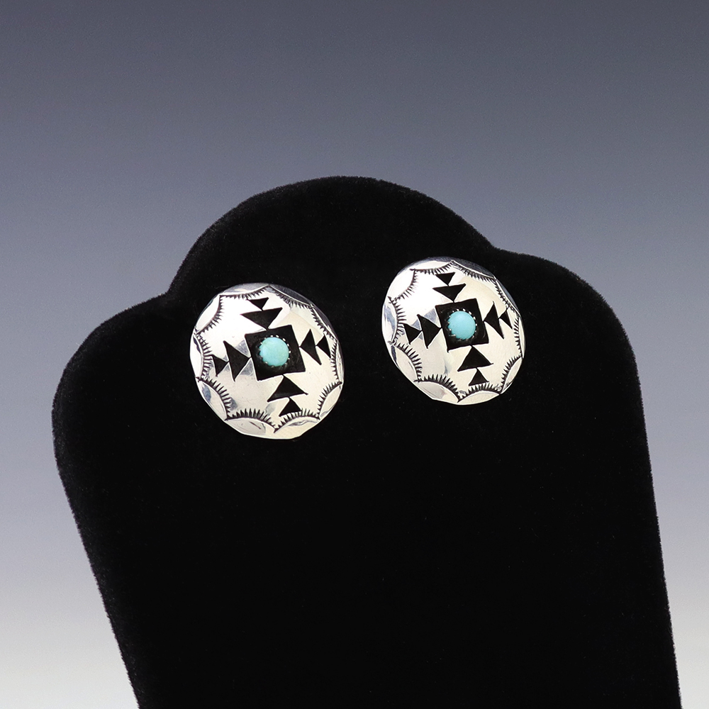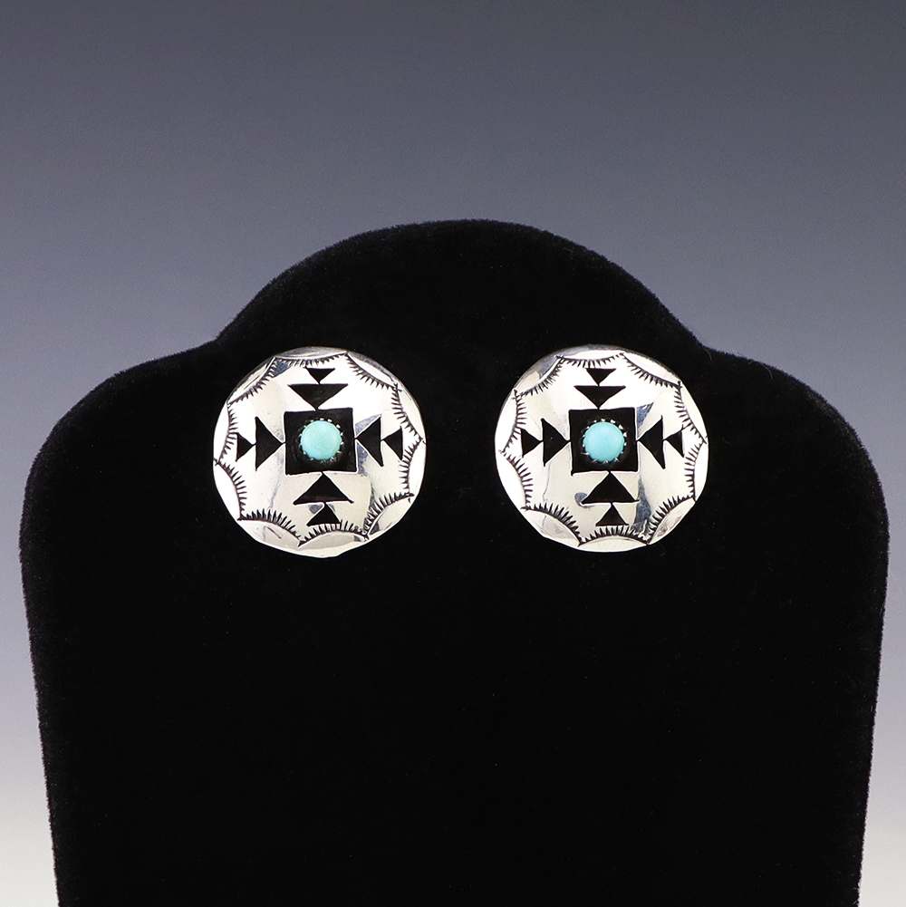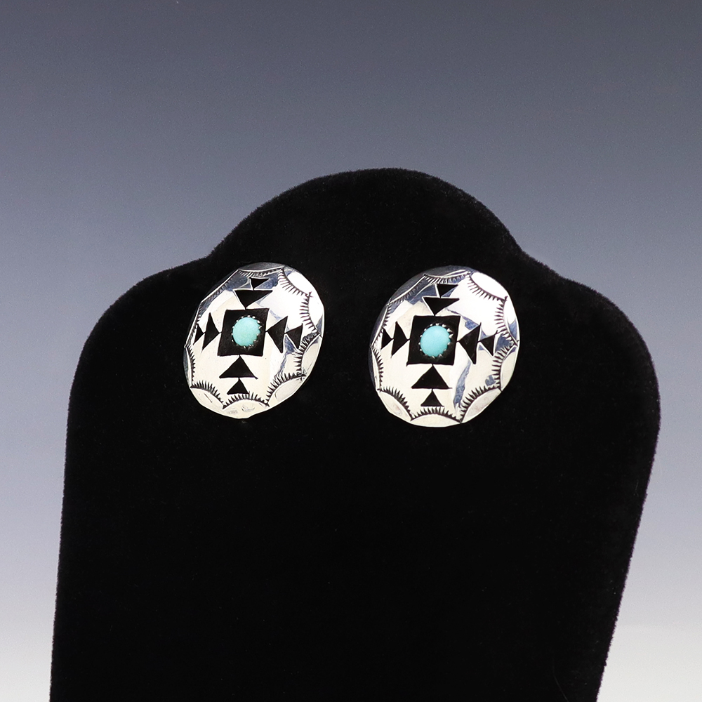NAVAJO STERLING SILVER & TURQUOISE EARRINGS BY EVA & LINBERG BILLAH
