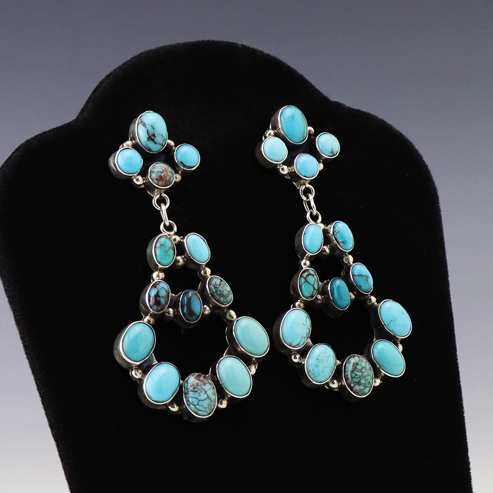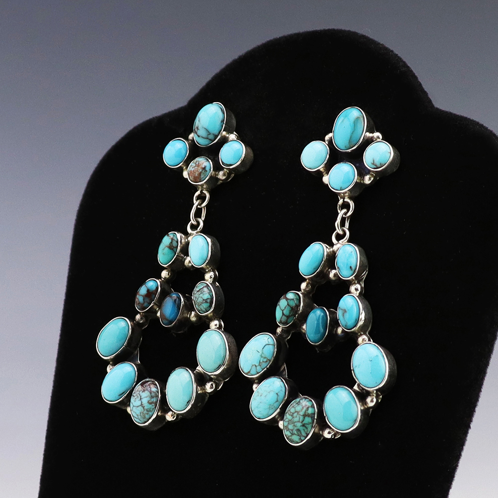 NATIVE AMERICAN ZUNI TURQUOISE EARRINGS BY NANCY & SHELDON WESTIKA