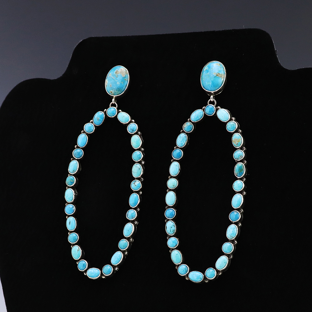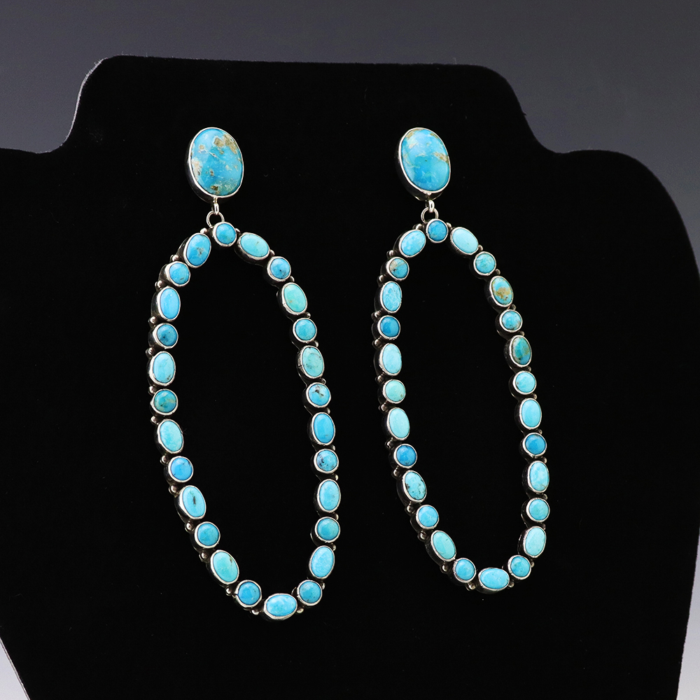 NAVAJO STERLING SILVER & TURQUOISE EARRINGS BY EVA & LINBERG BILLAH