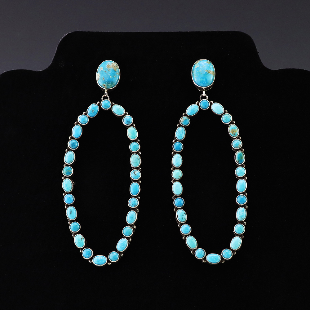 NAVAJO STERLING SILVER & TURQUOISE EARRINGS BY EVA & LINBERG BILLAH
