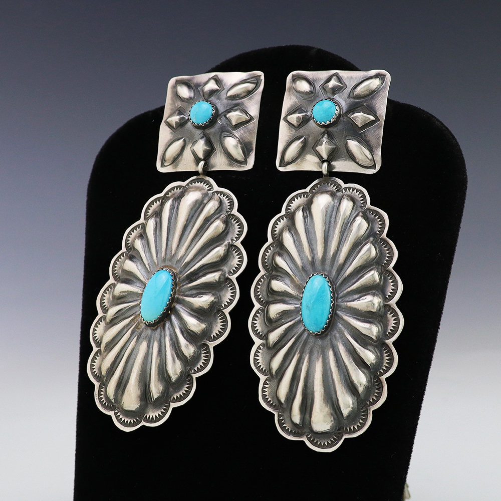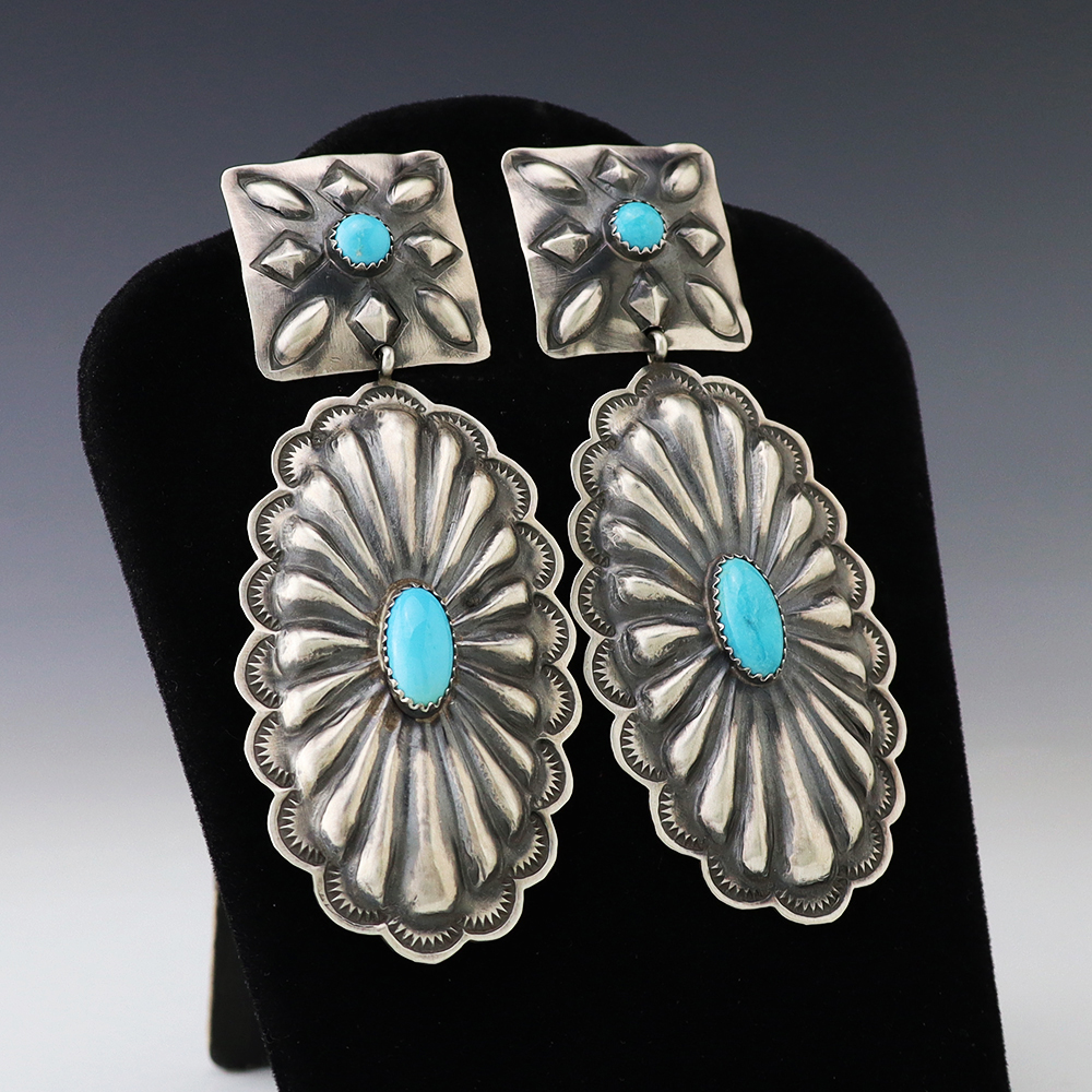 NATIVE AMERICAN ZUNI TURQUOISE EARRINGS BY NANCY & SHELDON WESTIKA