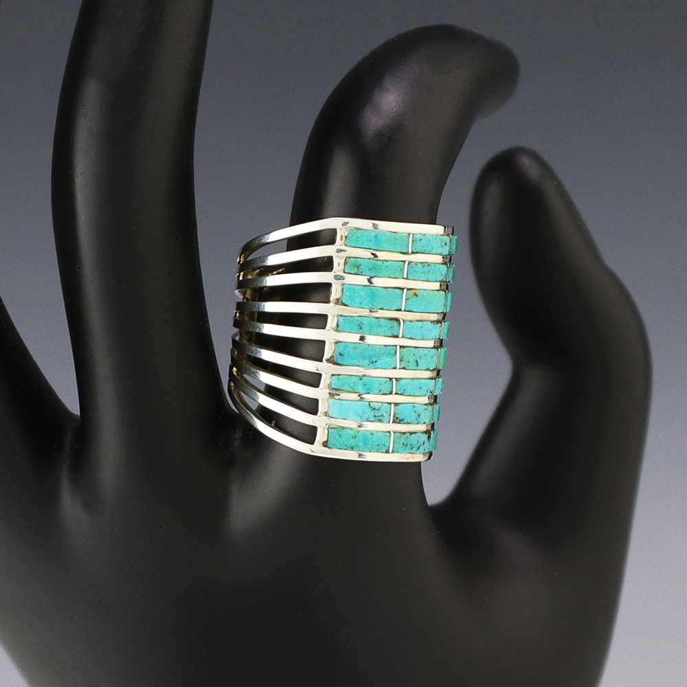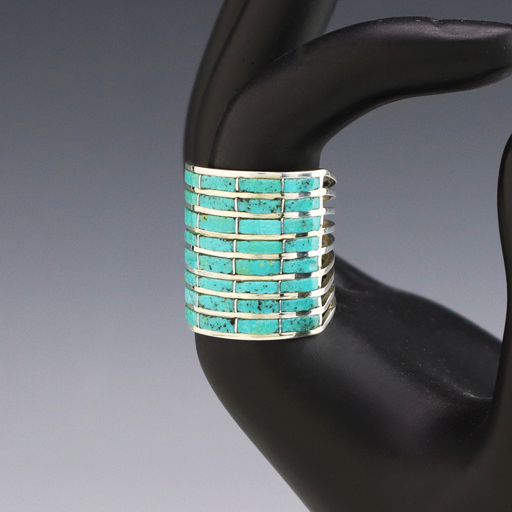 Around 1865, a Navajo Blacksmith Atsidi Sani who admired the silver adornments that the Spaniards and their horses had. Atsidi Sani got the Spaniards to teach him how to work with silver and began making silver conchos. This was the beginning of Navajo jewelry, and soon Atsidi taught his brother and many others how to silversmith. Traditionally, Navajo jewelers made silver jewelry with just stamp work and no stones. Today, they have expanded their jewelry making techniques and they create beautiful jewelry using sand casting, stone inlay, and overlay.