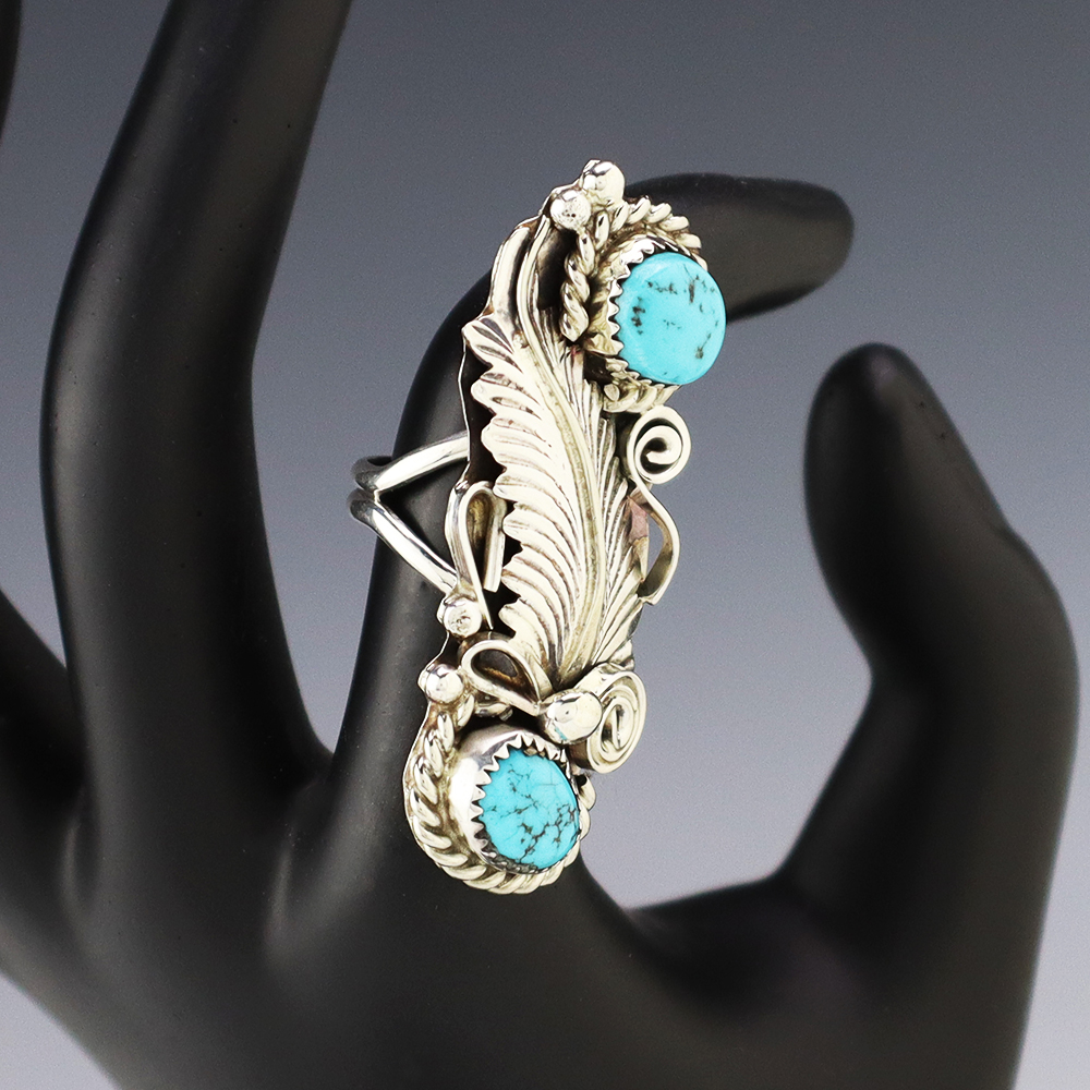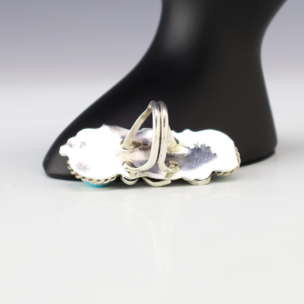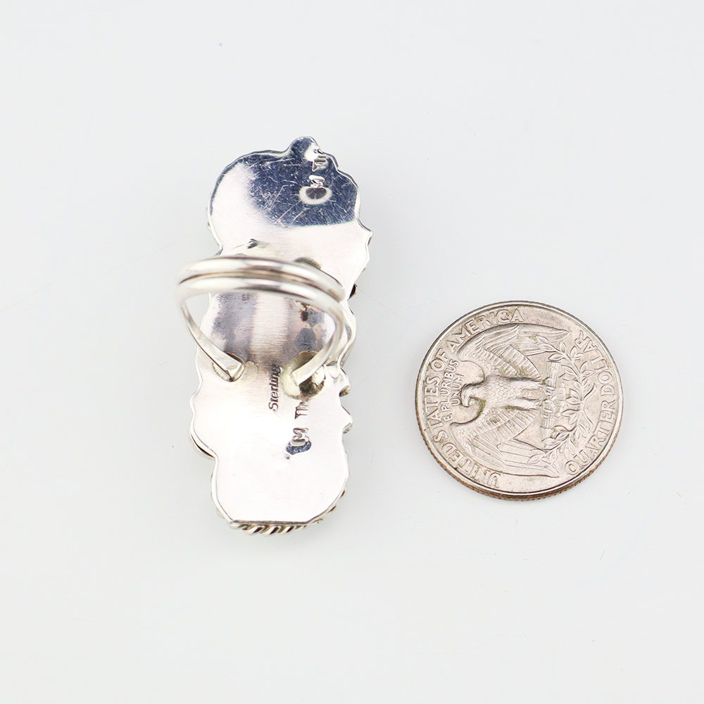 Amazing inlay work! Zuni jewelry makers, Nancy and Sheldon Westika made this stunning ring. Made out of sterling silver and inlaid with Kingman Turquoise and Jet. Zuni artists are known for their lapidary work. The Westikas have been making jewelry since the 1970’s and they are known for their fine...