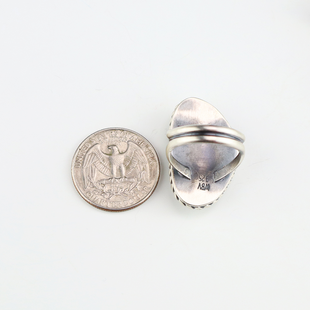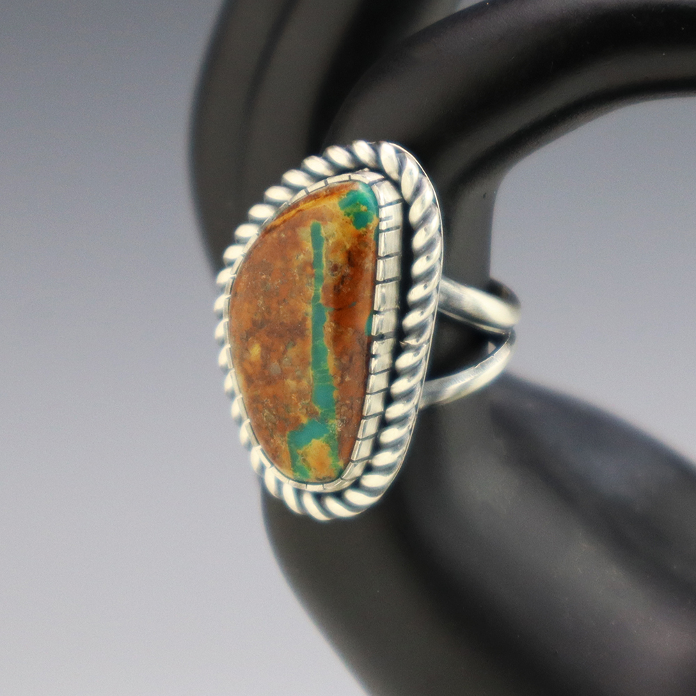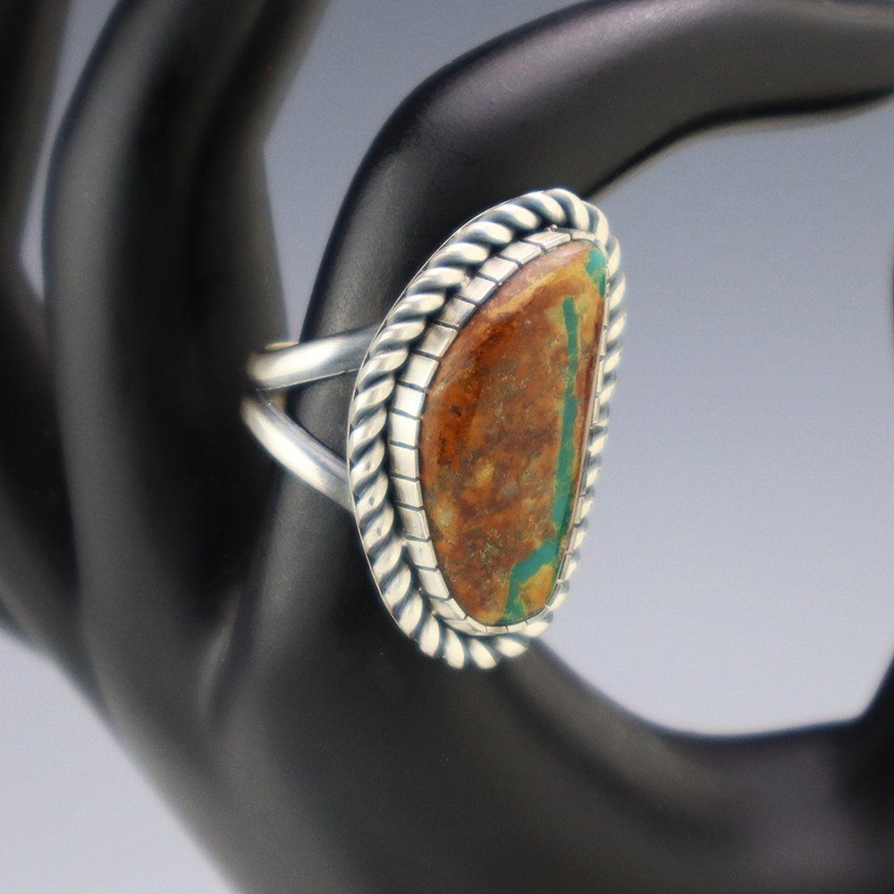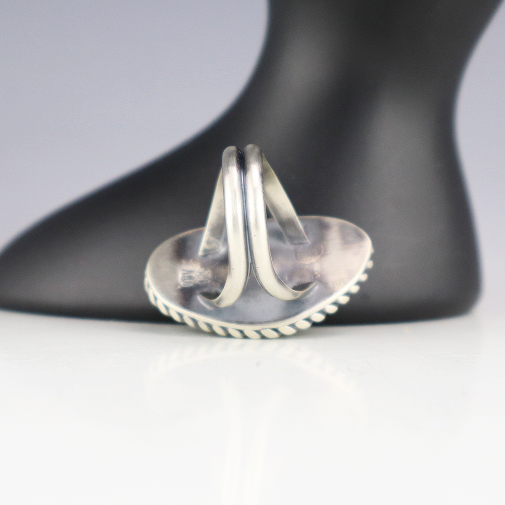 NATIVE AMERICAN TURQUOISE & JET RING BY NANCY & SHELDON WESTIKA 11 1/4